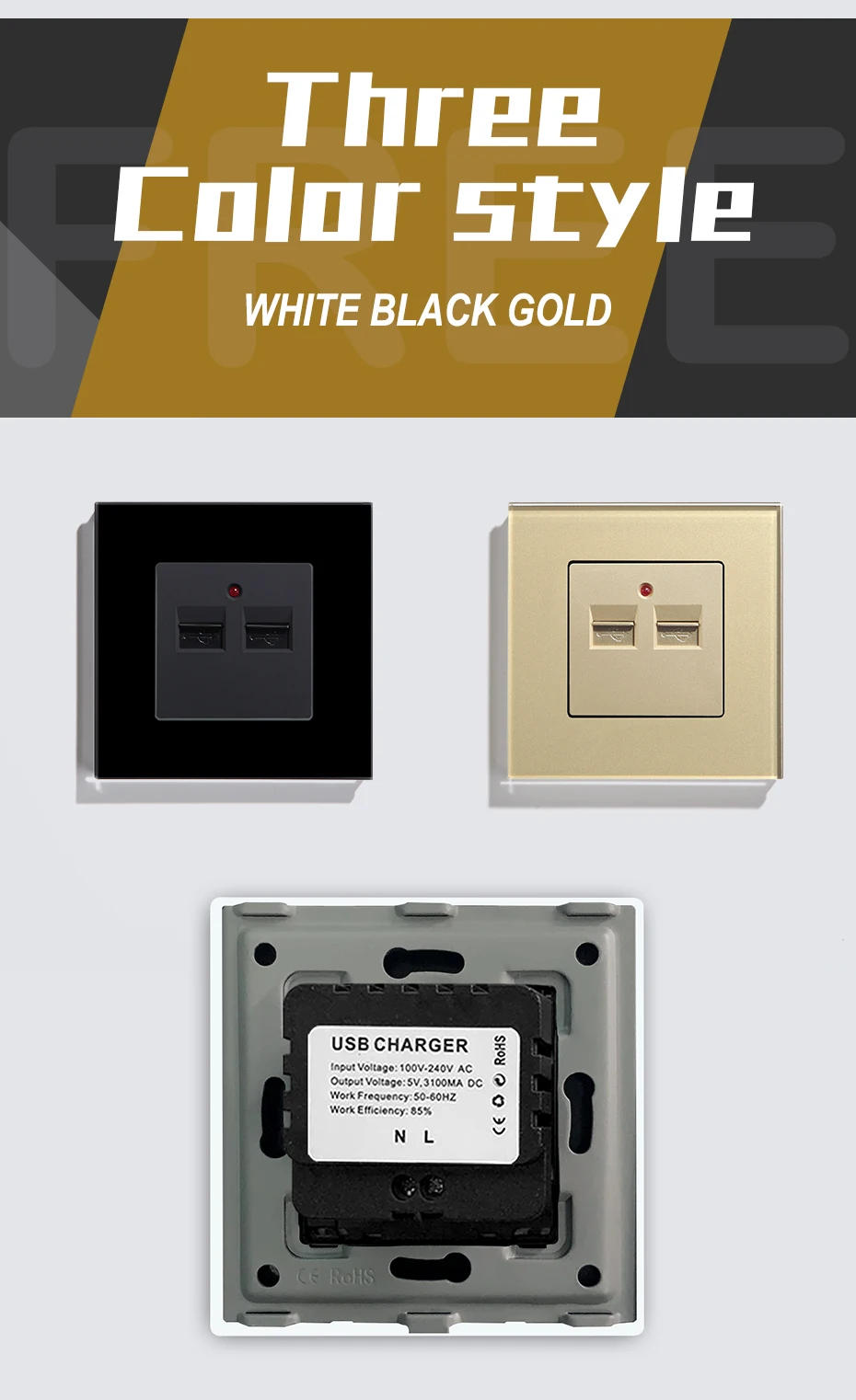 BSEED двойная USB настенная декоративная розетка двойная черная золотистая белая панель Бесплатная доставка
