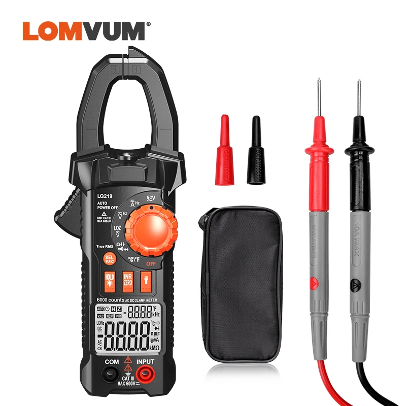 LOMVUM 600A Цифровые токоизмерительные клещи цифровой Бесконтактный 6000 Граф AC DC Напряжение Ture Rms бесконтактная проверка напряжения переменного мультиметр частоты с светодиодный фонарик
