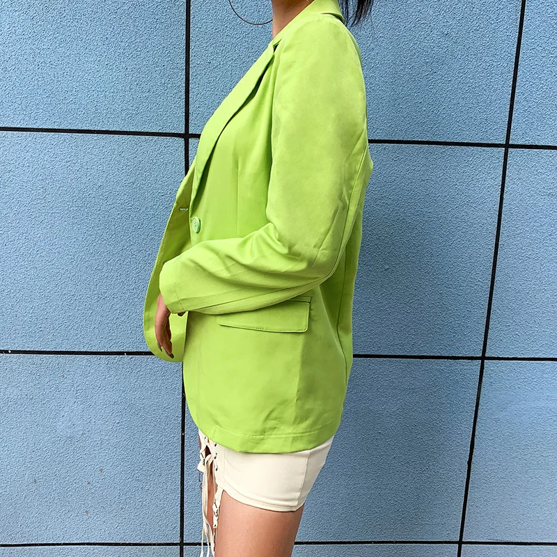 Women Blazer Oversize 2019 Autumn Long Coat Sexy Simple Candy Color Slim Long-sleeved Suit Kendall Fashion Avocado Green Blazer