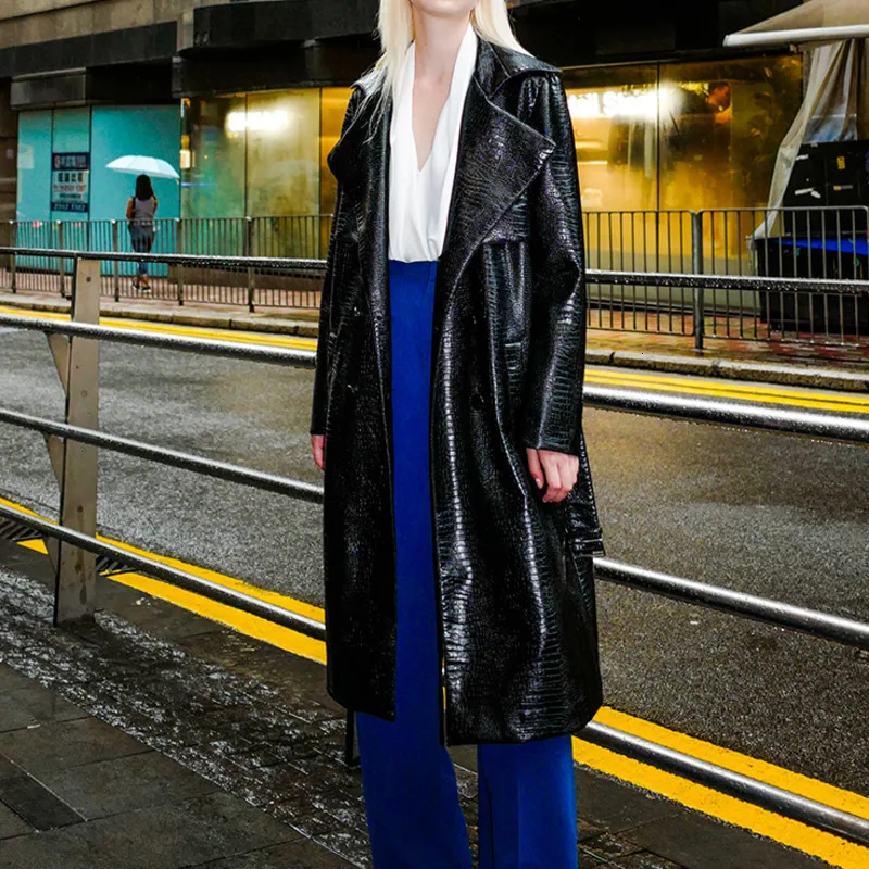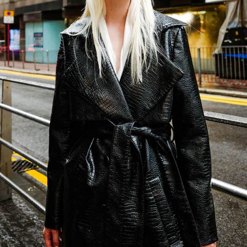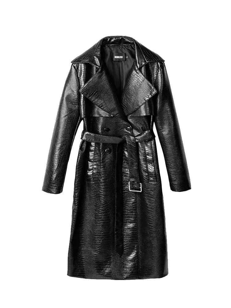 Весенне осенний Тренч европейская новинка Женская ветровка кожаный с отстрочкой