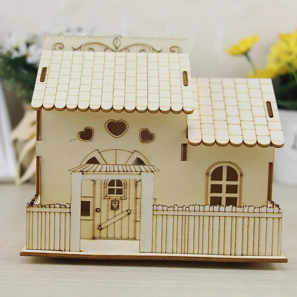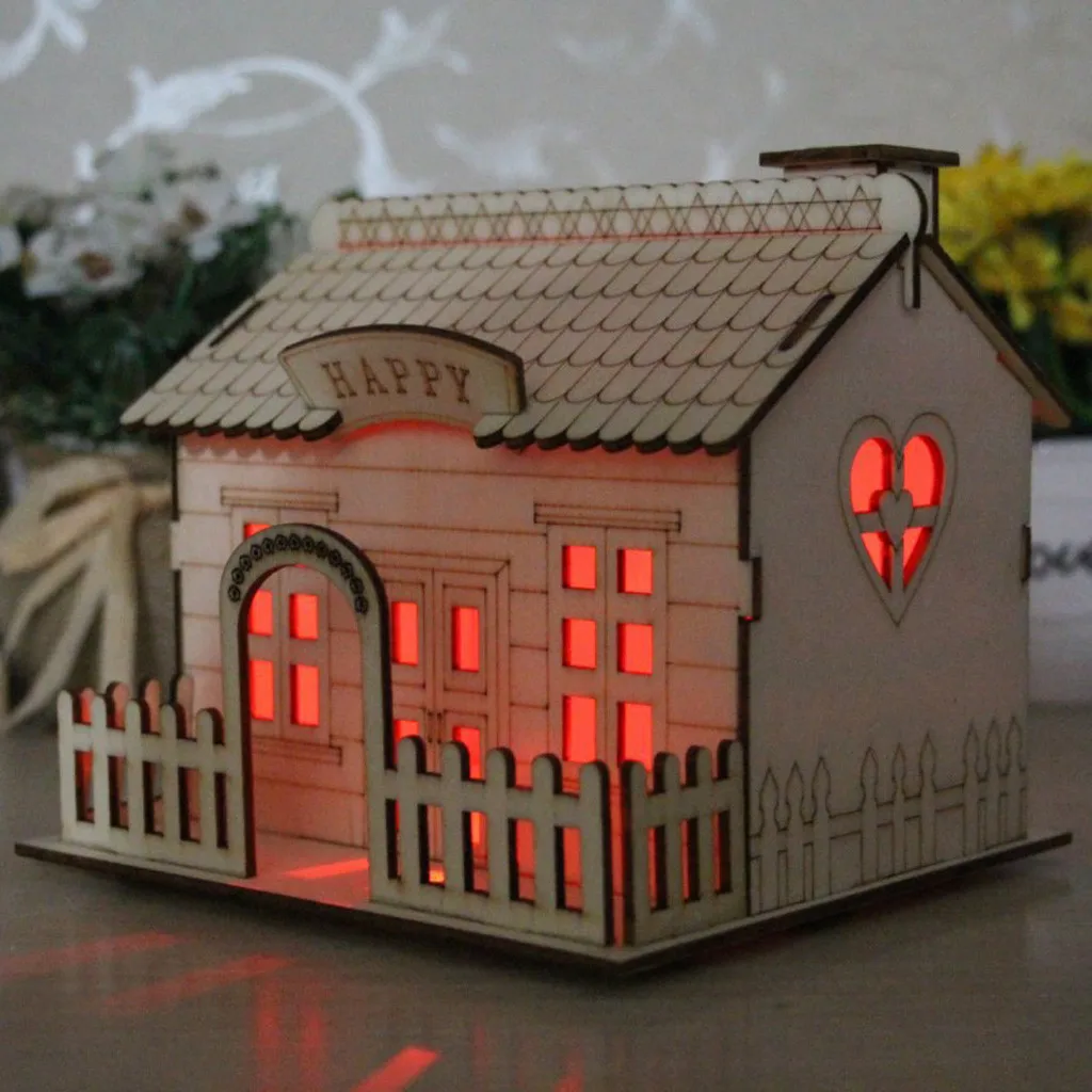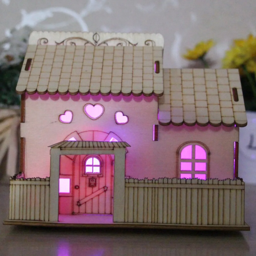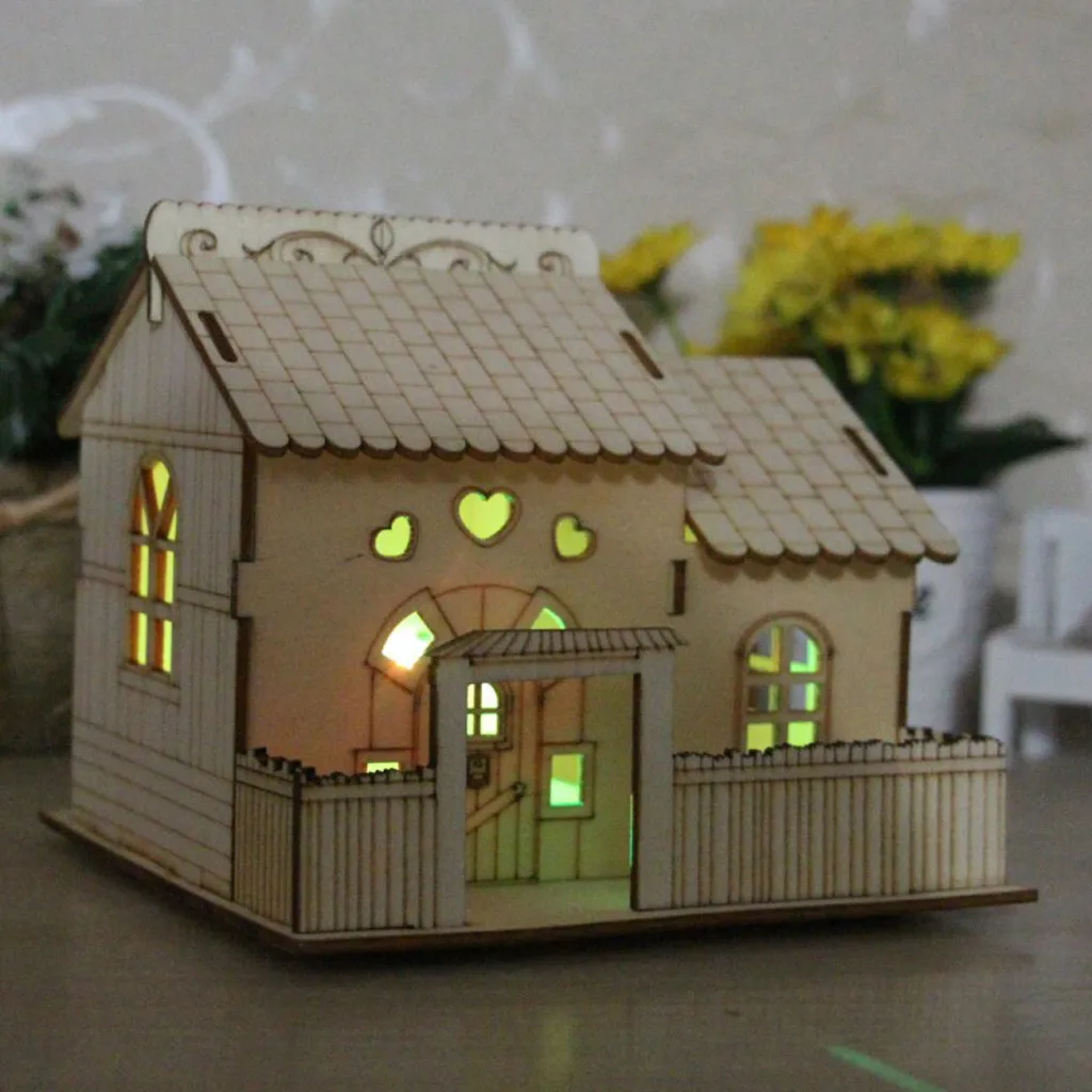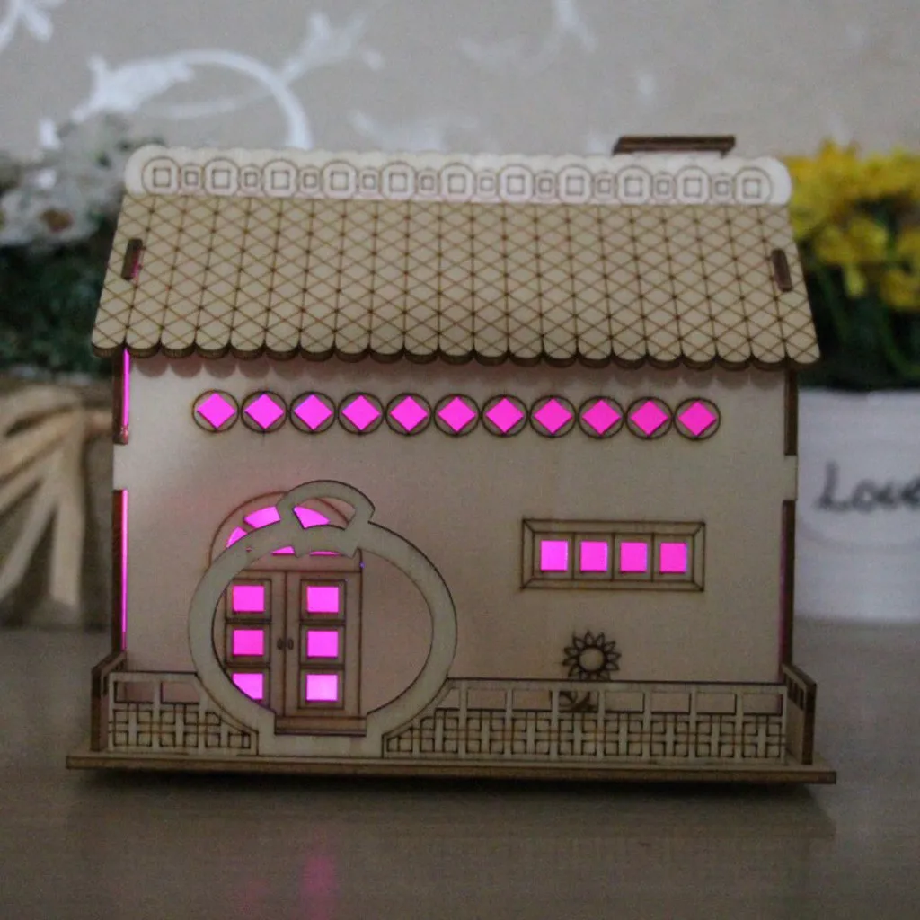 - Творческий деревянный домик, вилла модель с светодиодный светильник