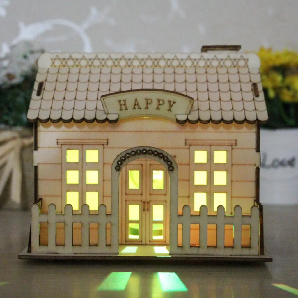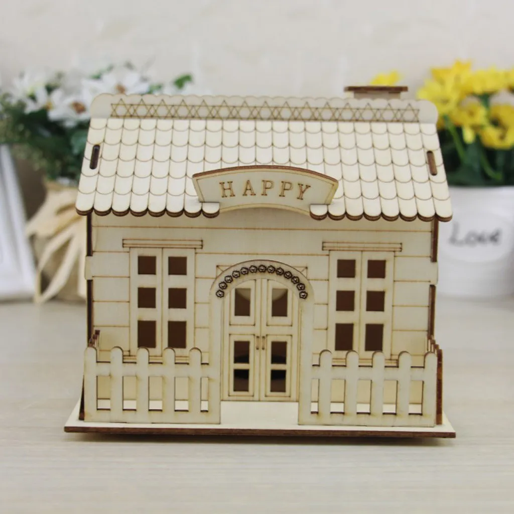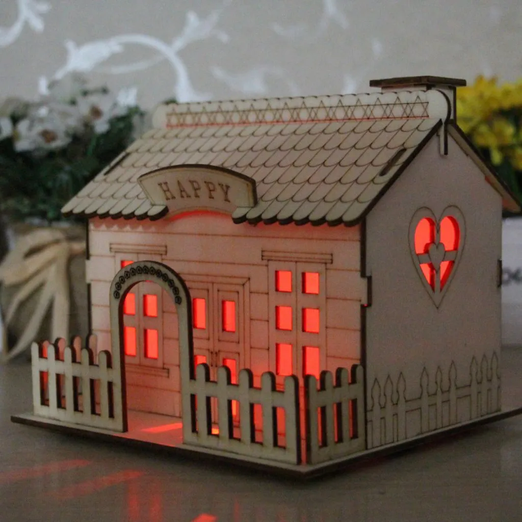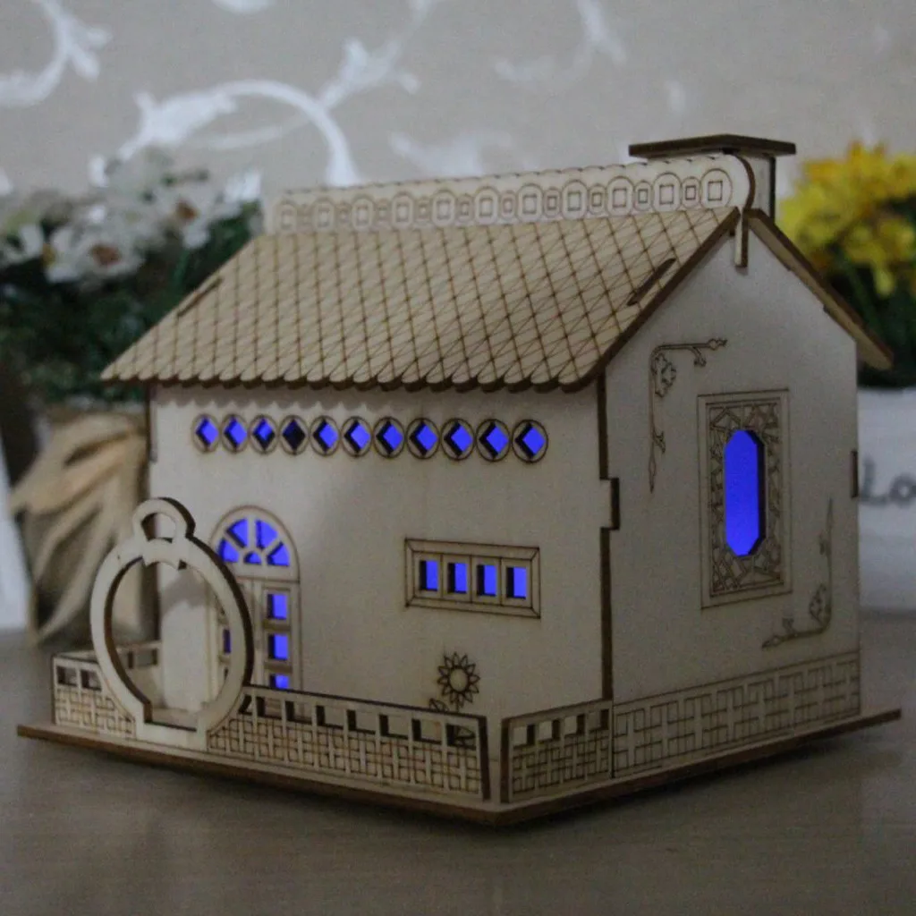 - Творческий деревянный домик, вилла модель с светодиодный светильник