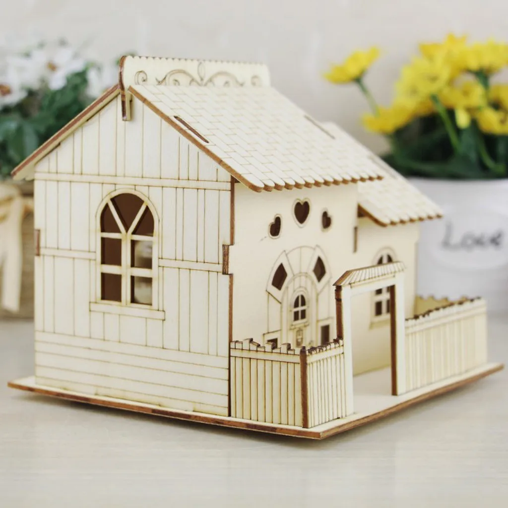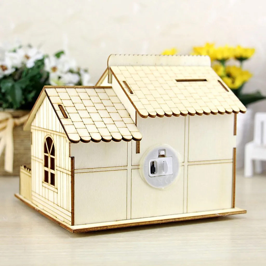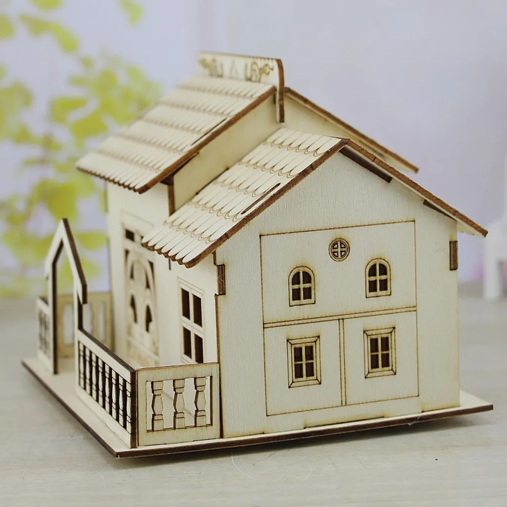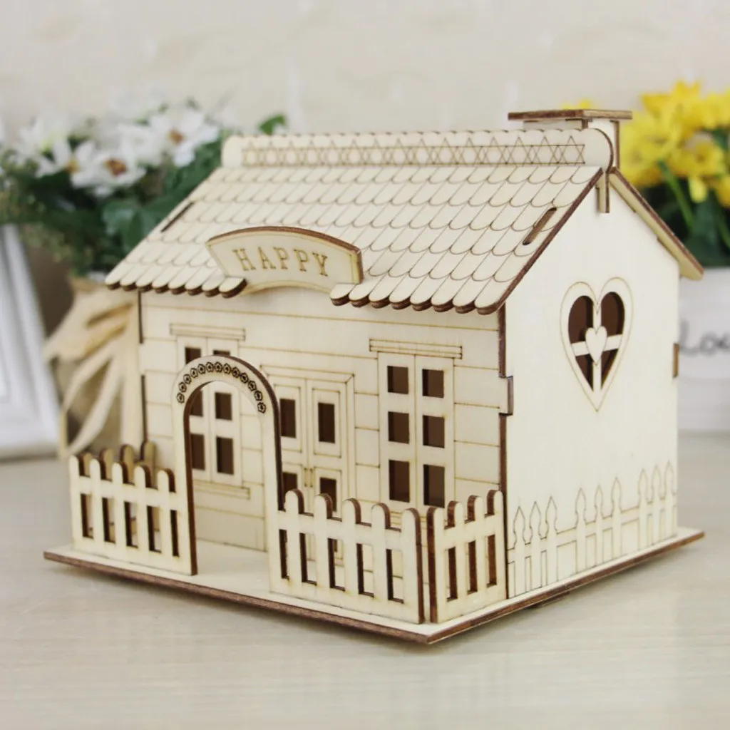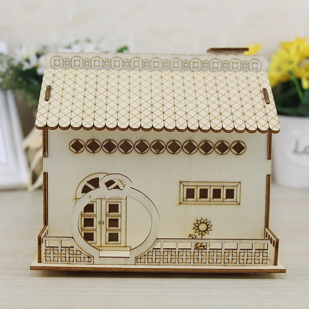 - Творческий деревянный домик, вилла модель с светодиодный светильник