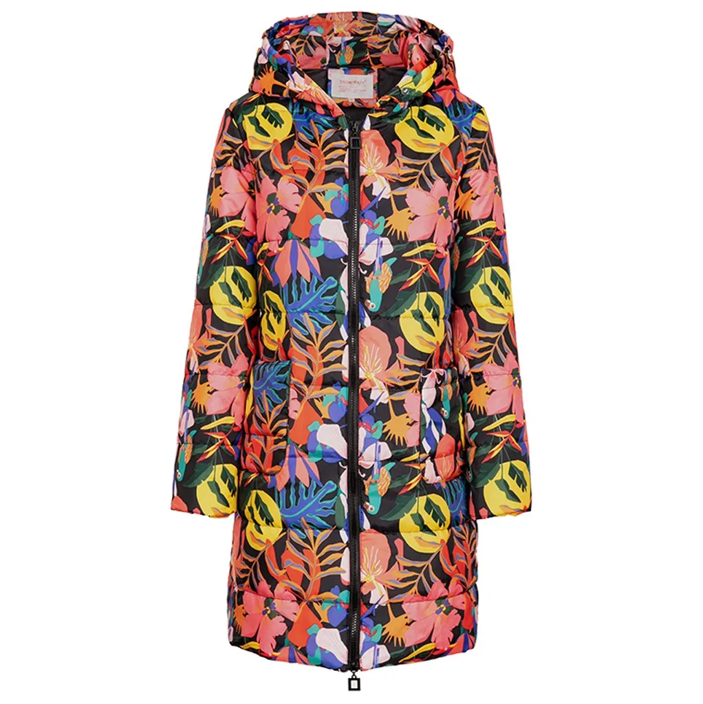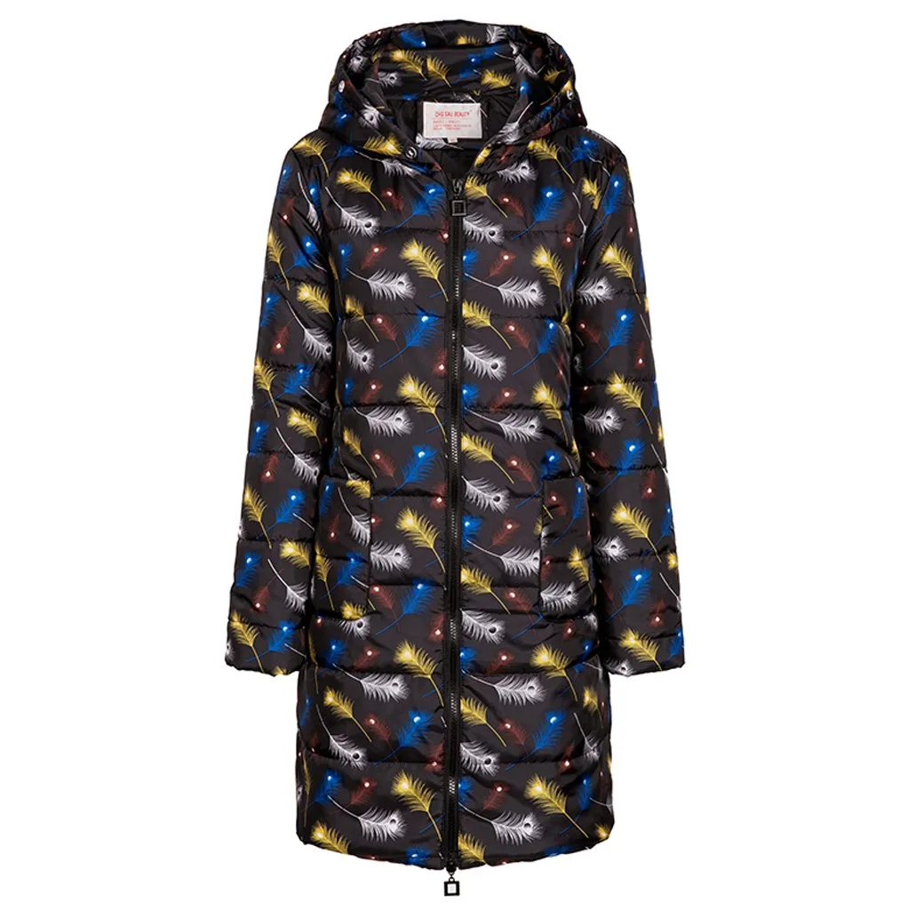 Женское длинное пальто на утином пуху черная красная зеленая фиолетовая куртка с