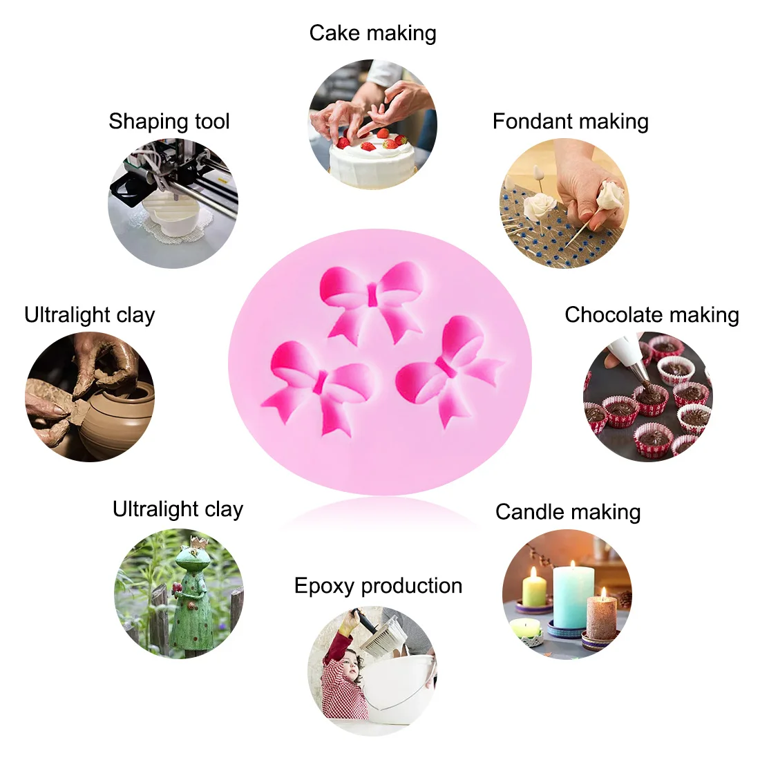 1 шт., силиконовая форма для торта с бантом, цветок с бантами, 3D форма для помадки, кухонная форма для выпечки, инструмент для украшения торта, трафареты для шоколадного мыла