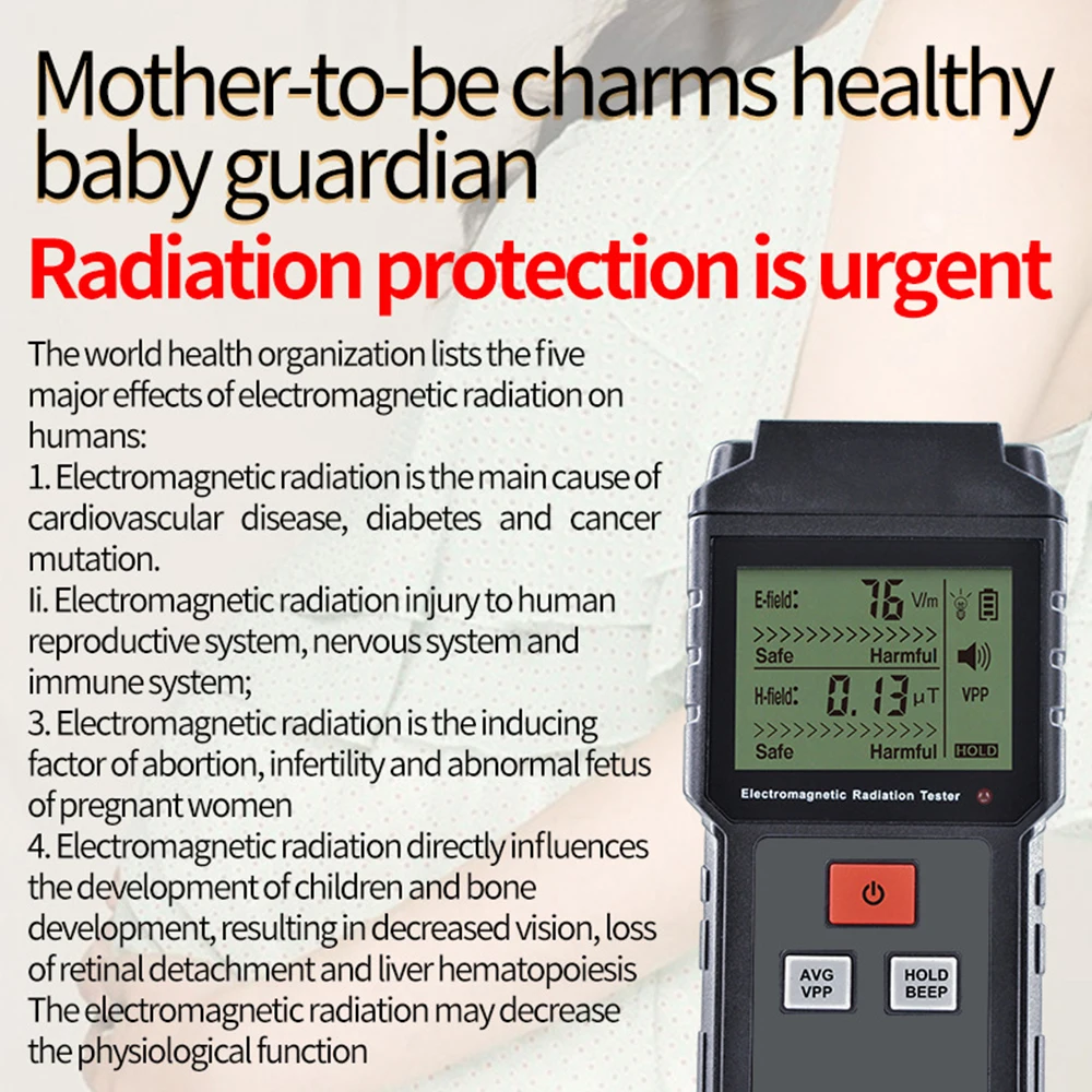 One instrument with two uses,it can test the electric field and the magnetic field radiation at the same time. Sound-light alarm,when the test result exceeds the safe value,the instrument will alarm automatically. Functions:Data locking,keeping data,low electricity prompt,auto power-off. LCD display of the values for easier reading. Radiation assessment, remind you whether the radiation value is safe or not.