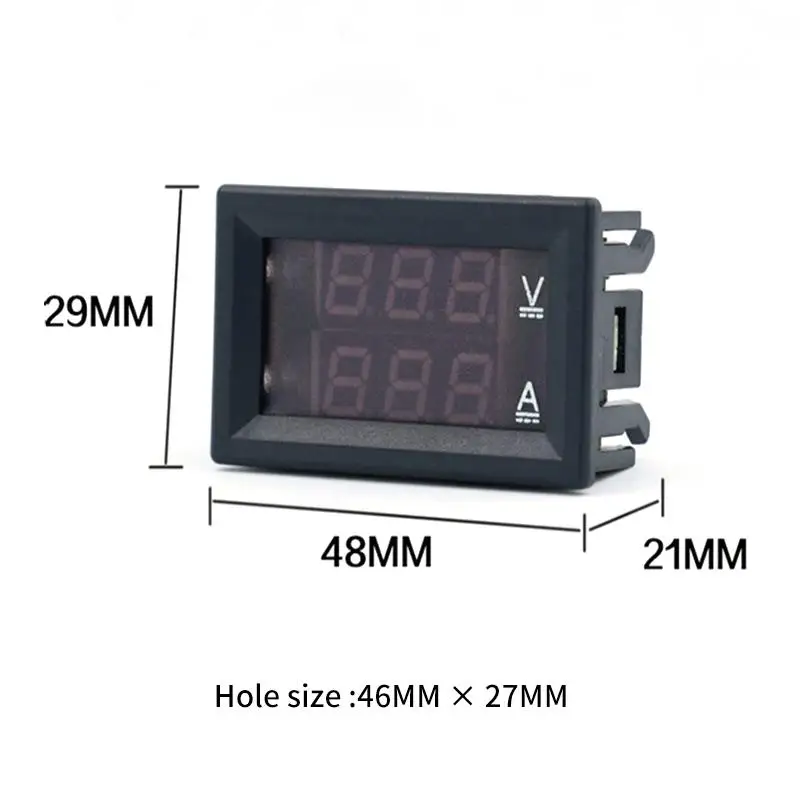 Цифровой вольтметр имеет красный светодиодный индикатор, чтобы показать данные о напряжении и синий светодиодный индикатор, чтобы показать текущие данные.