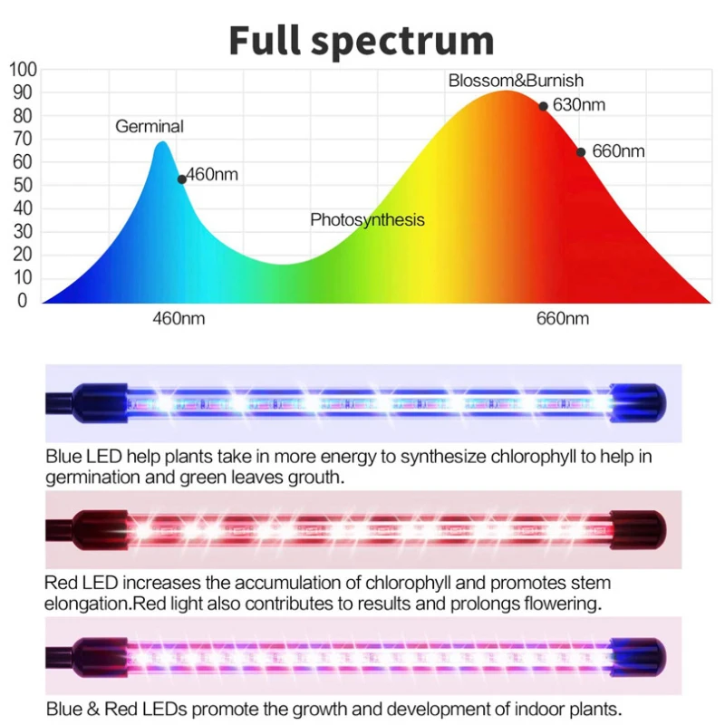 USB Grow светильник Descritpion: Срок службы: 50000 часов Светодиодный чип: 18 Вт с двумя головками usb 40 светодиодный s (красный: 26, синий: 14) 27 Вт Три головки usb60leds (красный: 39, синий: 21) 3 режима таймера-3 часа, 6 часов и 12 часов. 5 режимов яркости с регулируемой яркостью Изготовлен из алюминия и ПВХ, легкий и прочный с хорошей теплоотдачей. Низкое потребление и экологичность. 360deg гибкие goosenecks позволяют регулировать любое направление или область освещения. Рабочее широкое напряжение: 5 В постоянного тока USB; Частота: 50/60 Гц; Сертификаты: CE, ROHS, FCC