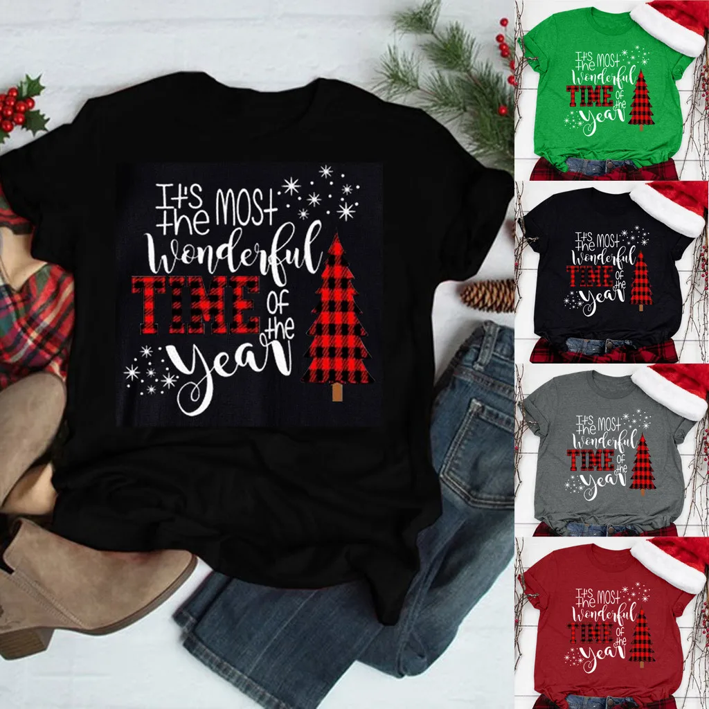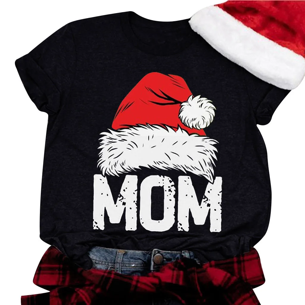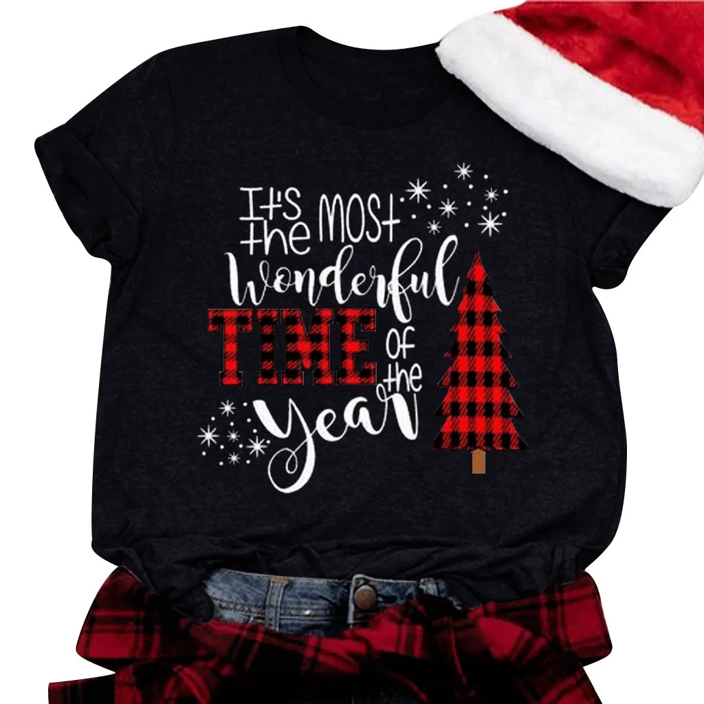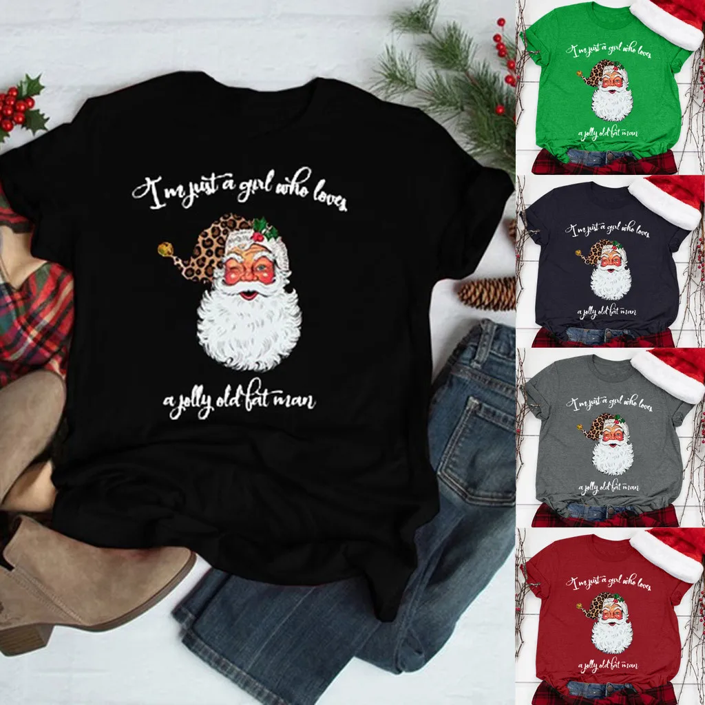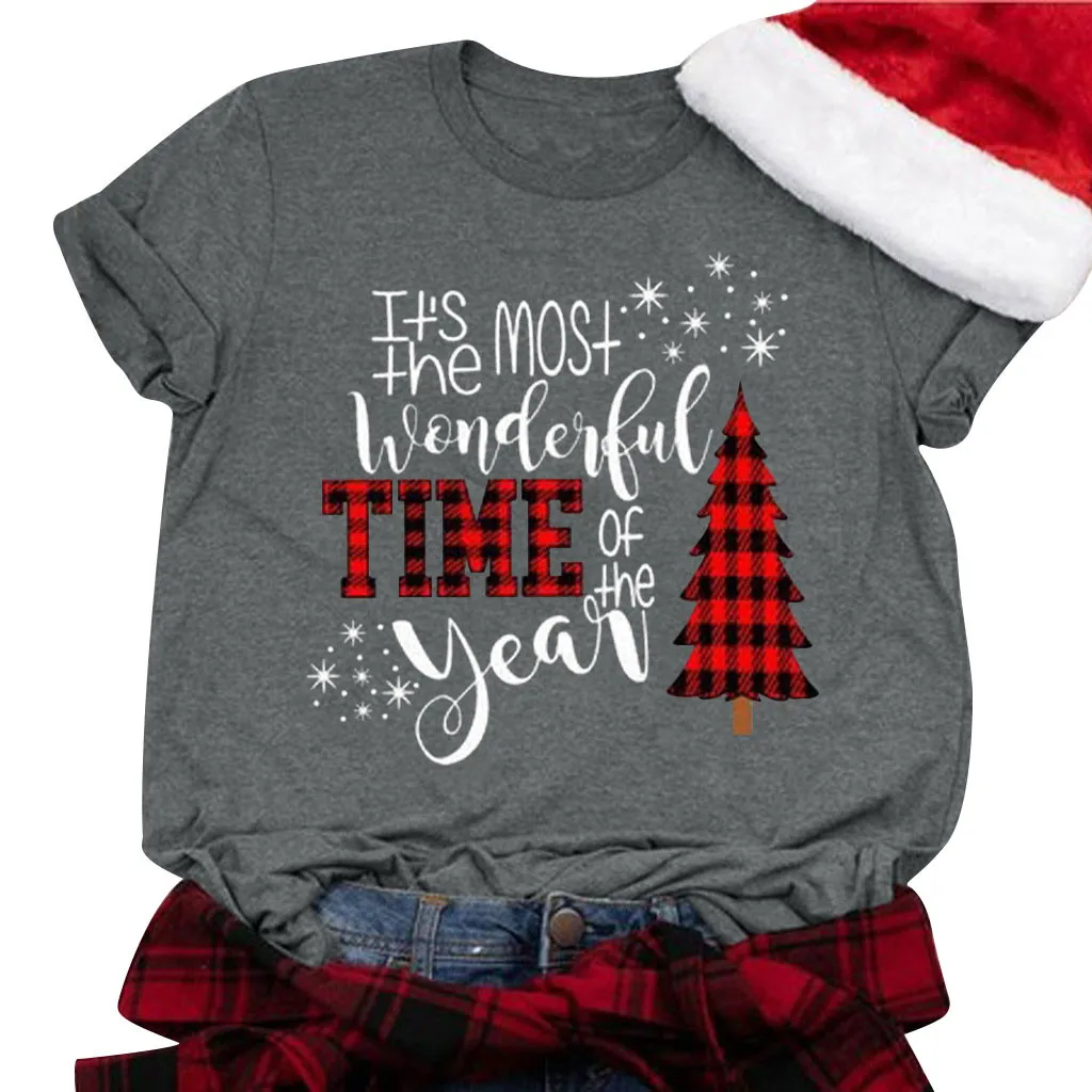 Рождественская женская модная повседневная Милая Праздничная рубашка с круглым вырезом и коротким рукавом