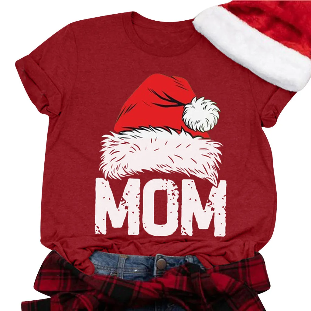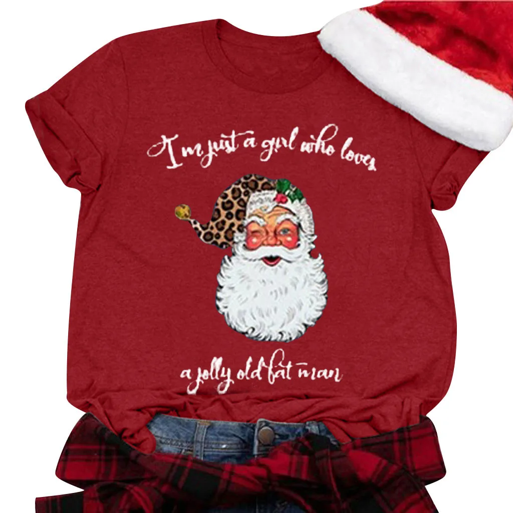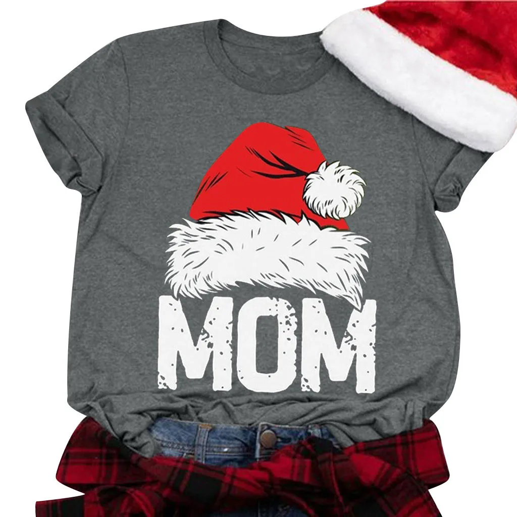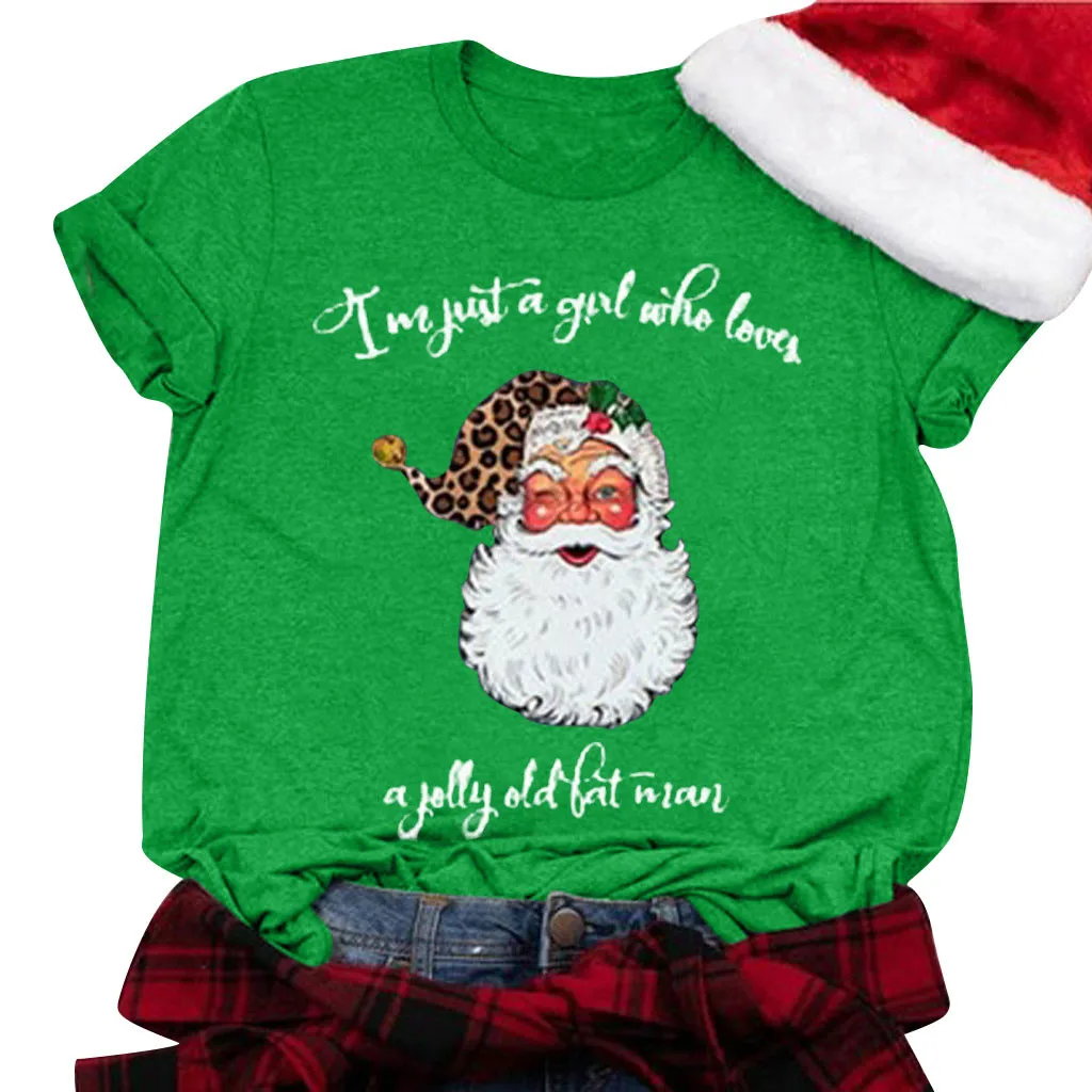 Рождественская женская модная повседневная Милая Праздничная рубашка с круглым вырезом и коротким рукавом