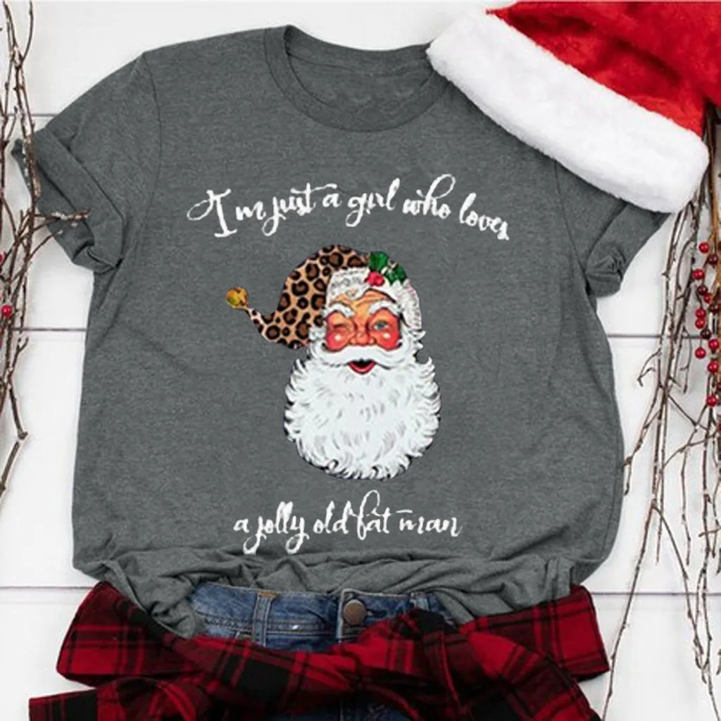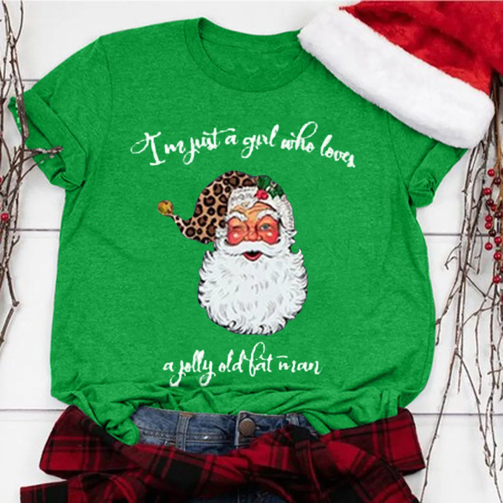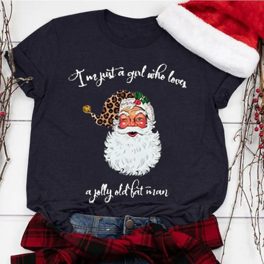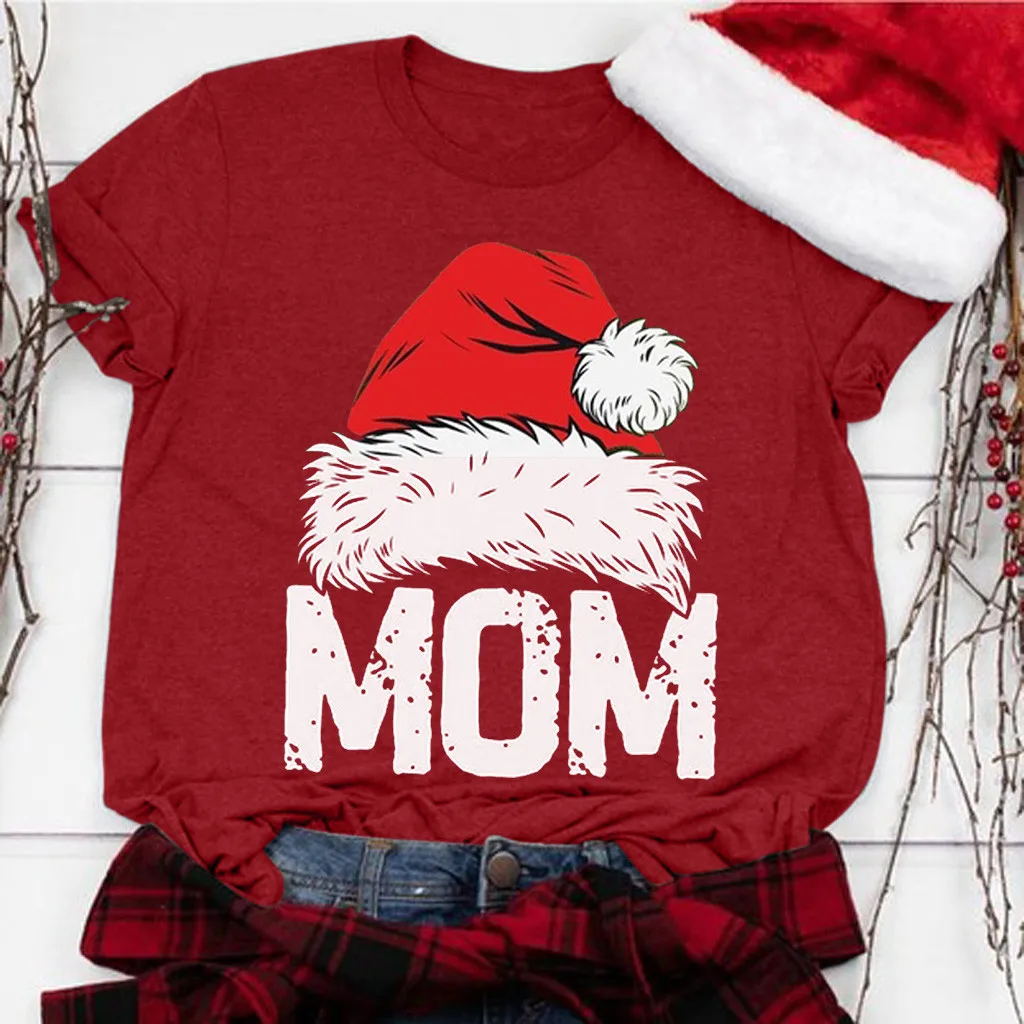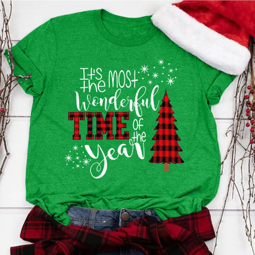 Рождественская женская модная повседневная Милая Праздничная рубашка с круглым вырезом и коротким рукавом
