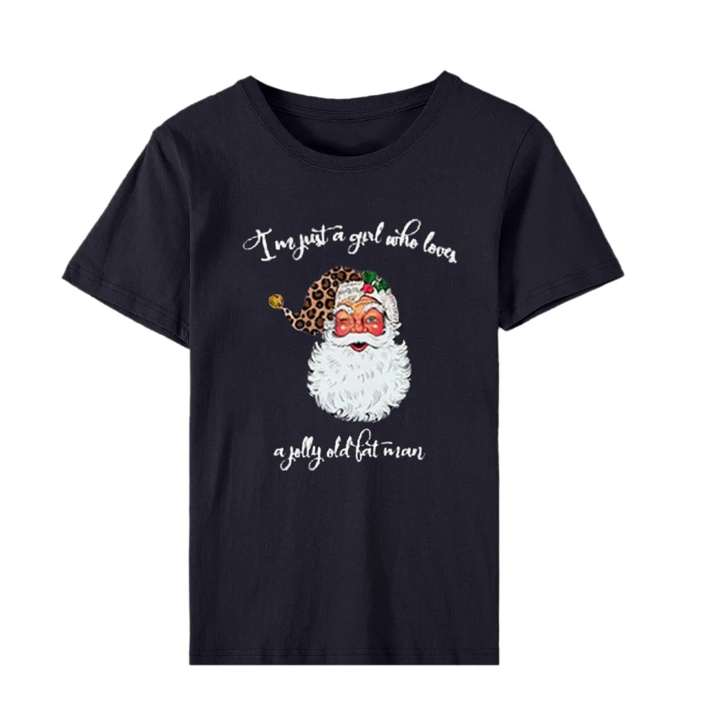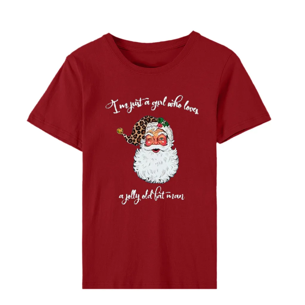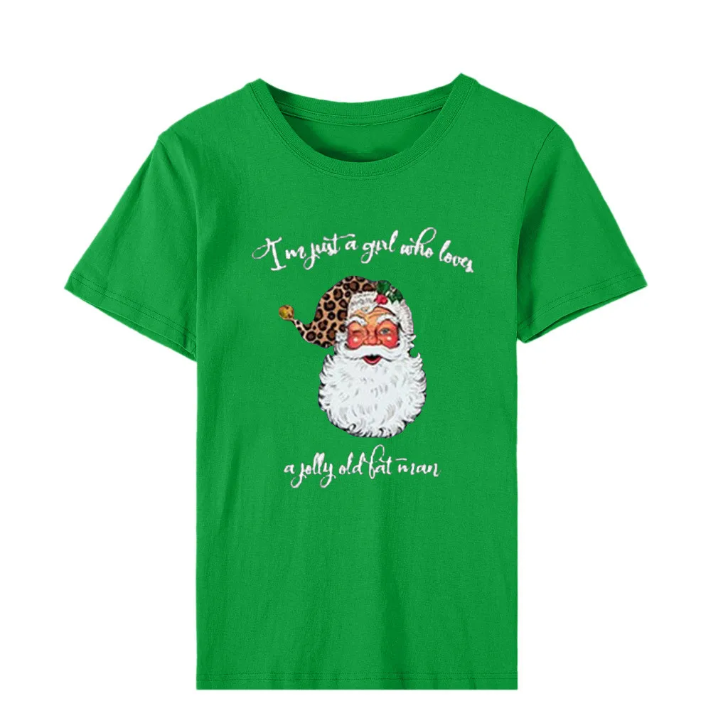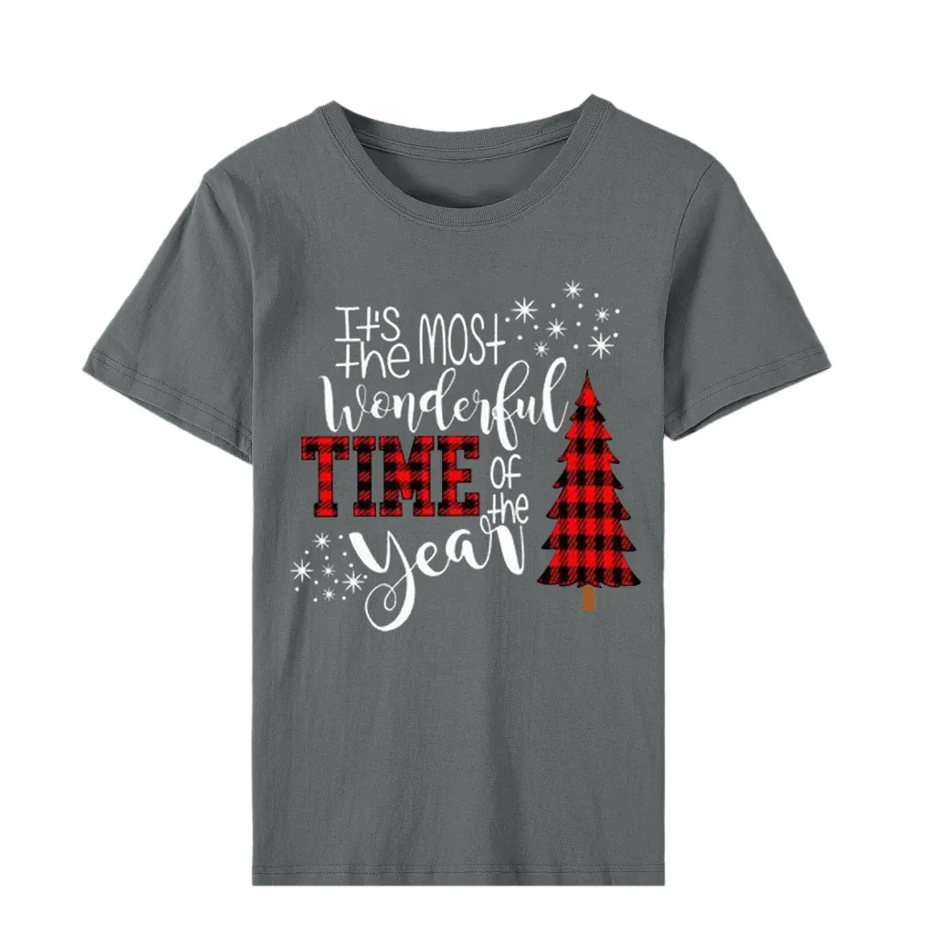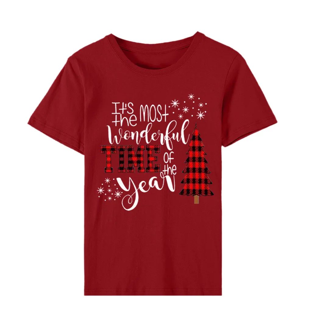 Рождественская женская модная повседневная Милая Праздничная рубашка с круглым вырезом и коротким рукавом