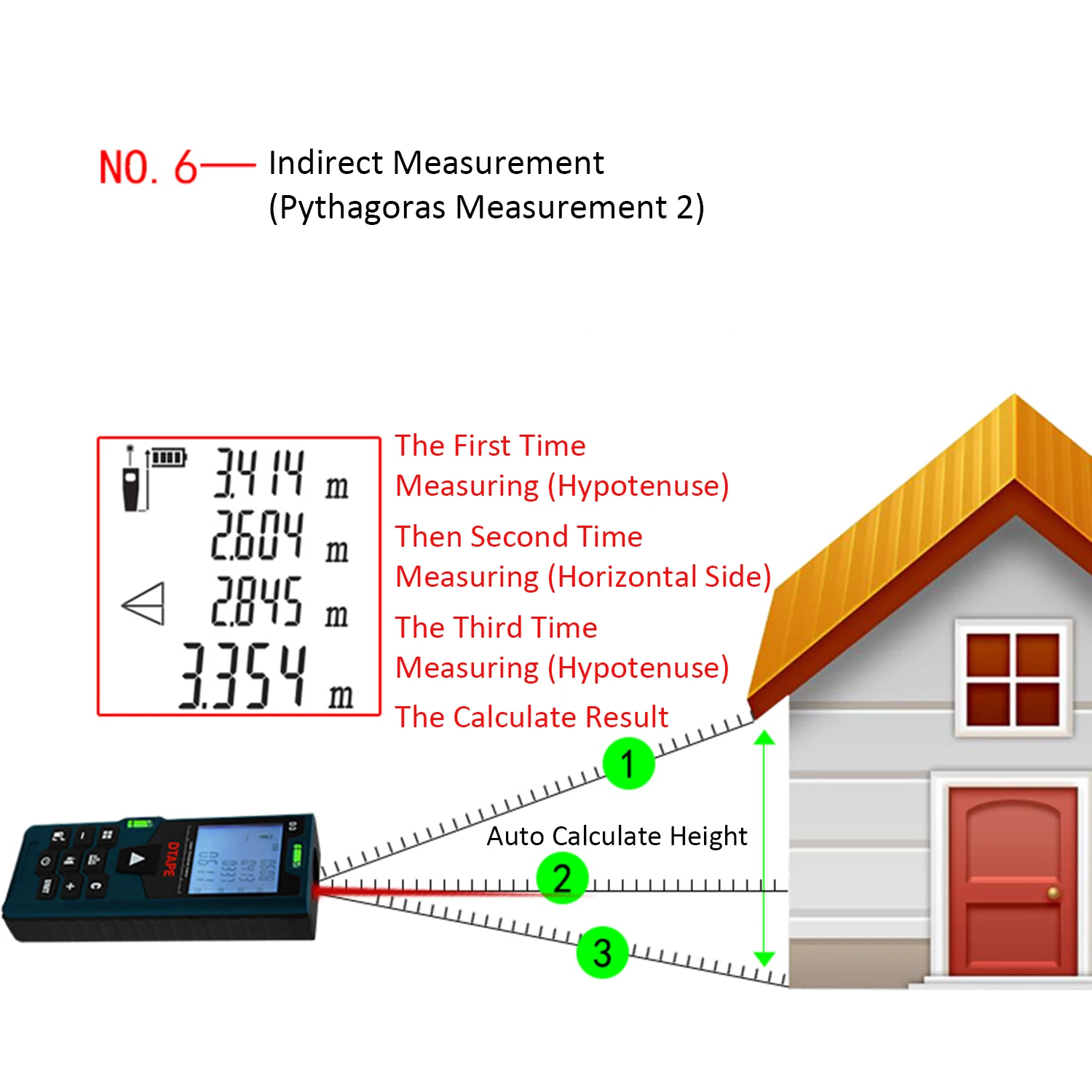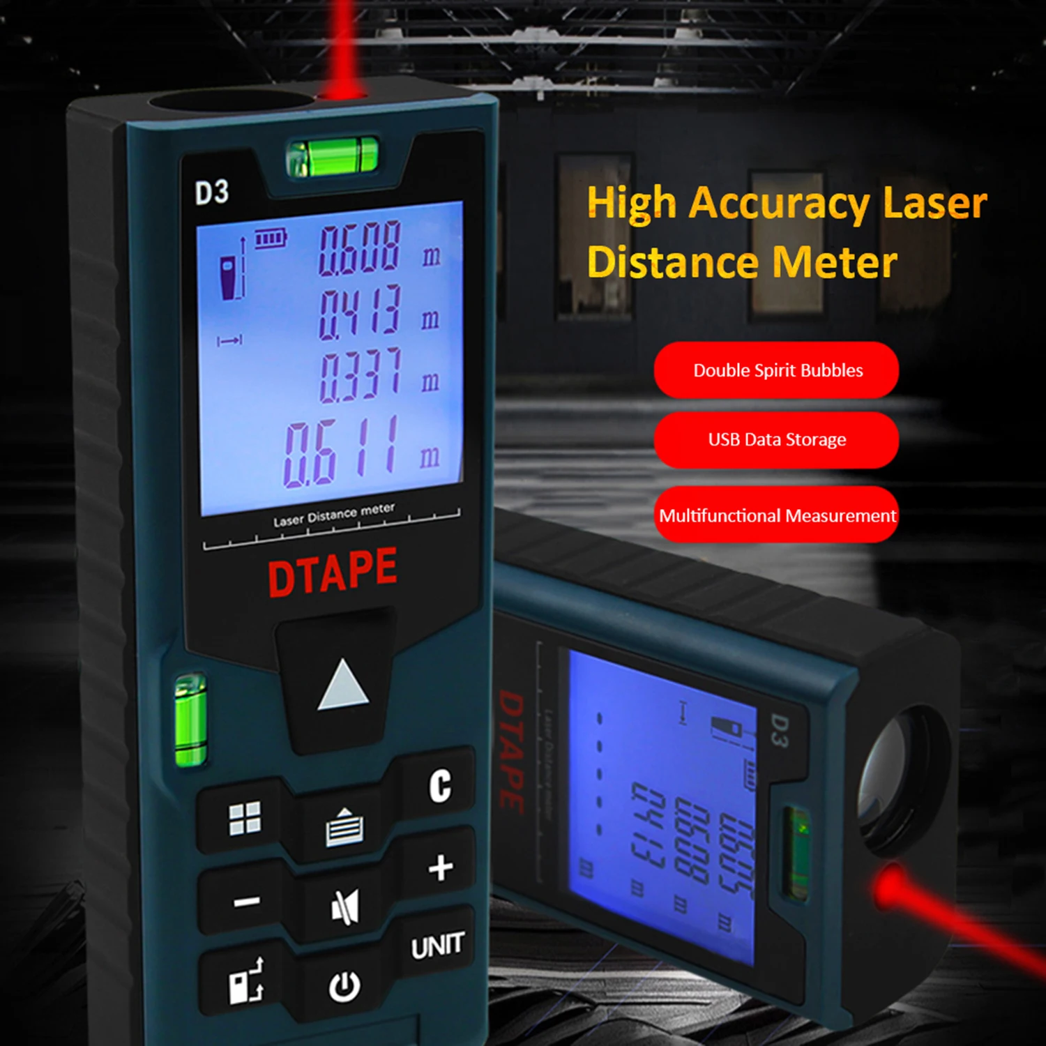 Хотите профессиональный лазерный дальномер с более высокой точностью? Попробуйте этот мини лазерный дальномер. Он может измерять расстояние, площадь и объем. Он также используется для непрямого измерения по теореме Пифагора. Простой в эксплуатации, точный в измерении, супер светильник для удобства переноски.