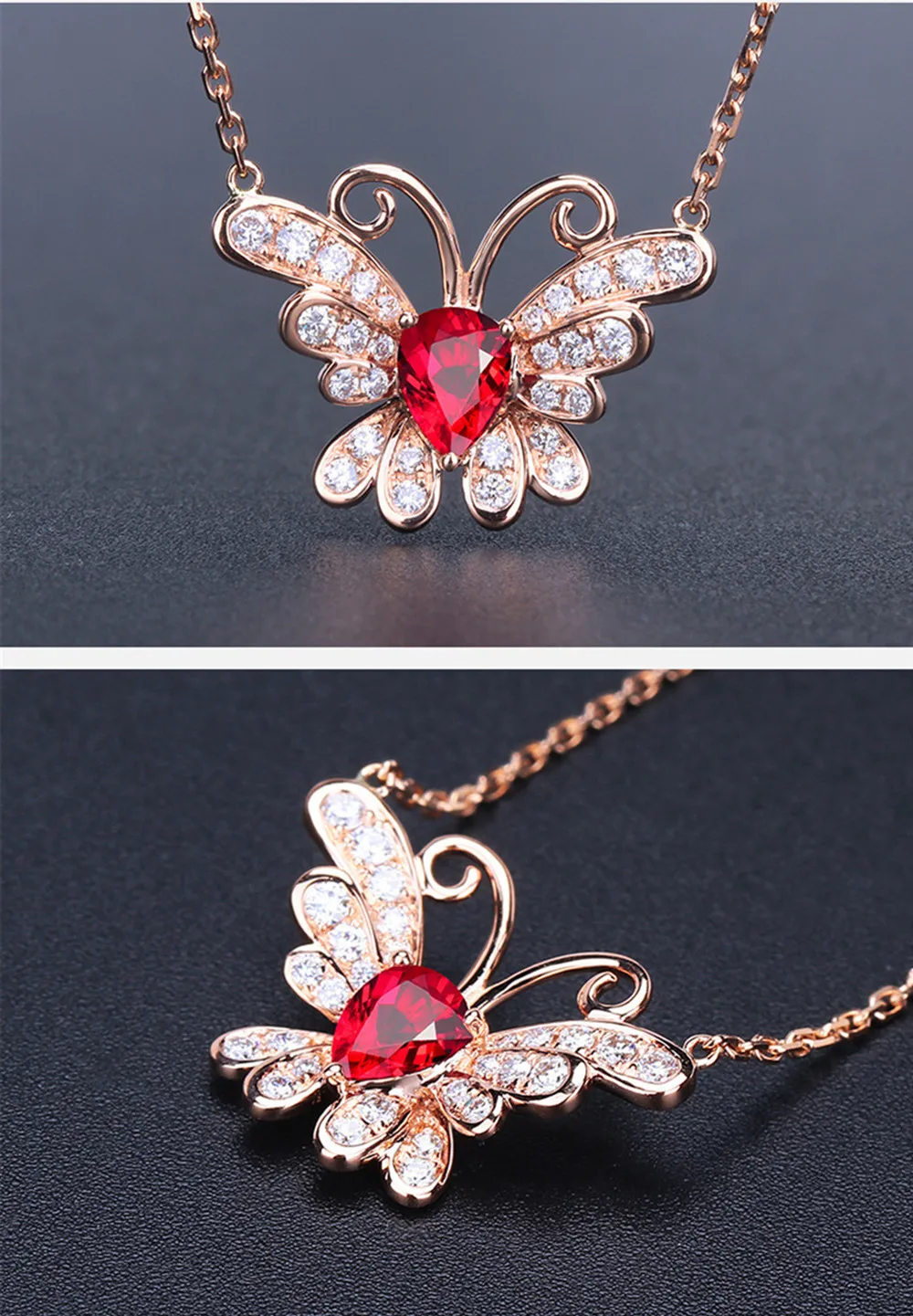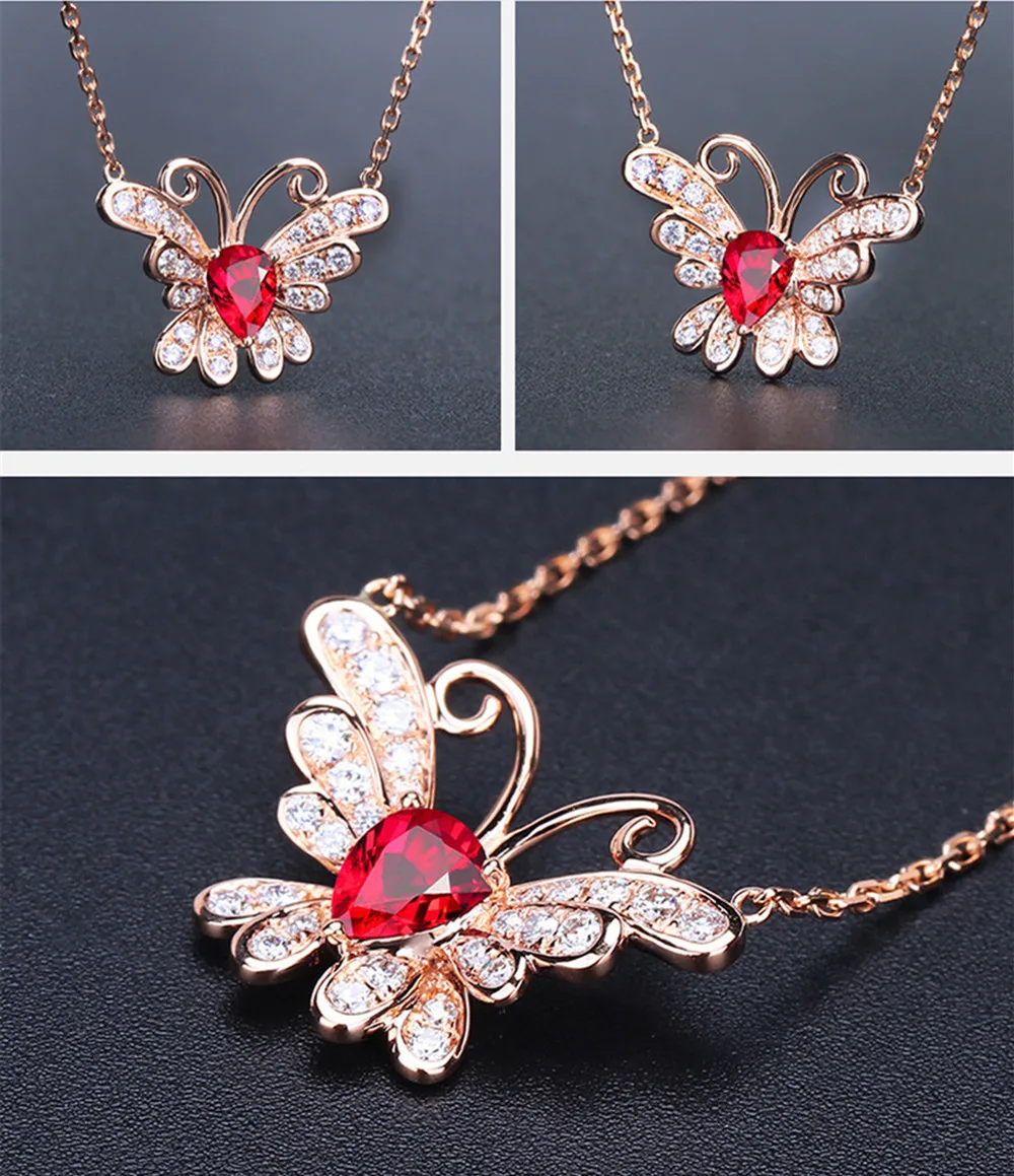 1. Ожерелье с кулоном в виде бабочек, Рубинового Камня, красного кристалла для женщин, с инкрустированными цирконами, роскошным, элегантным и романтичным. 2. Три раза покрытое розовым золотом 18 К Стерлинговое Серебро, длительное сохранение цвета. Прочный и прочный, здоровый материал. 3. Отличное качество изготовления, высокая полировка, гладкая, удобная и удобная в носке. Идеальное ожерелье с подвеской для женщин. 4. Это прекрасный подарок на годовщину, день рождения, День Святого Валентина, День благодарения и Рождество! 5. Также приятно носить на работе, вечерние или на каникулах 6. Высококачественный ювелирный бархатный Подарочный пакет входит в комплект 7. Мы отправим все заказы в течение 5 рабочих дней. 8. Режим транспортировки: Aliexpress Стандартная доставка, безопасная и быстрая. Ювелирные изделия, которые вы купили, соответствуют картинке Посылка включает в себя набор Рубиновой подвески и подходящего ожерелья. Длина ожерелья: 45 см