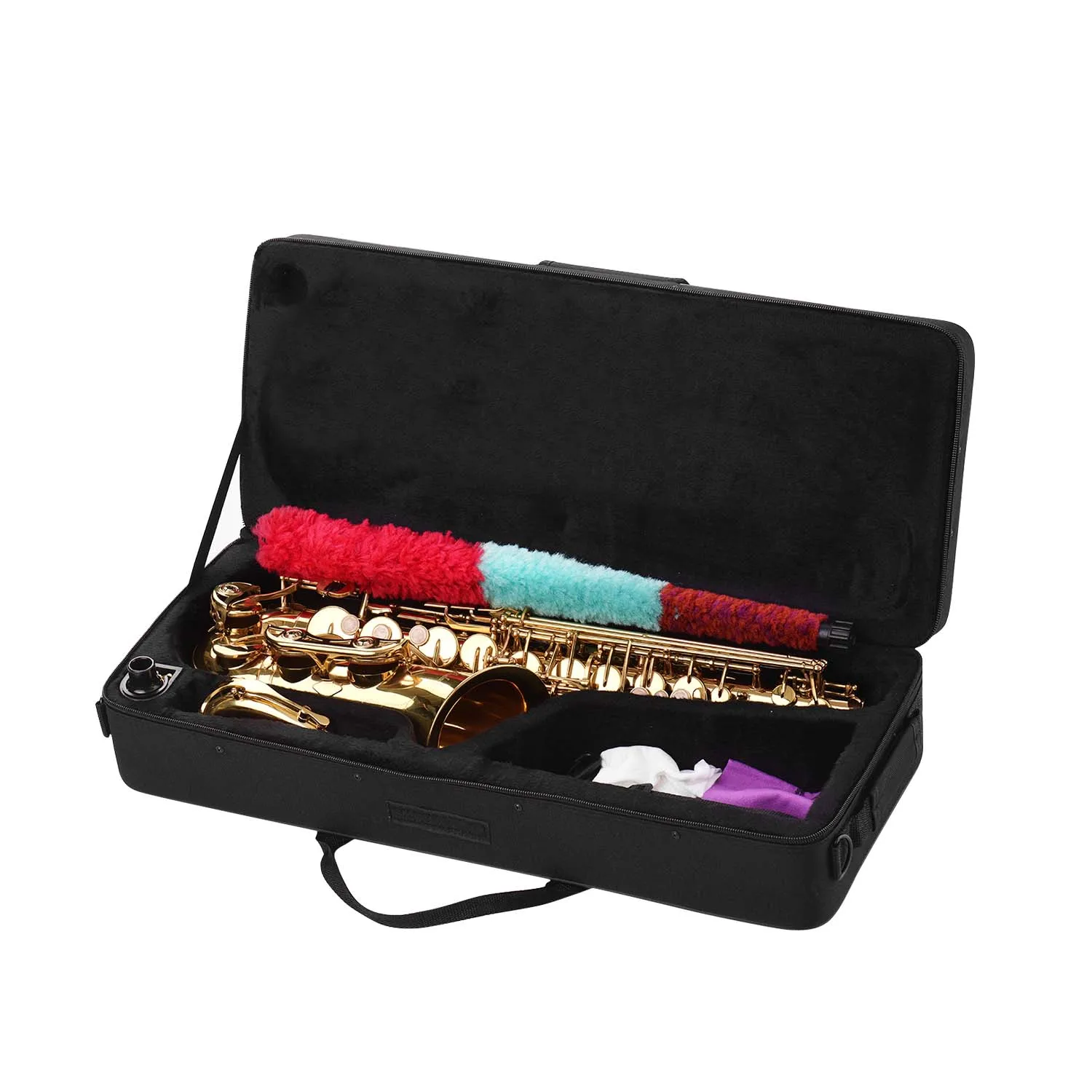 Rich and Practical Accessories-- The padded case with handle and shoulder strap is used to store and carry saxophone conveniently; the sax neck strap and gloves make your practice and performance easier and more professional; and the cleaning cloth and cleaning brush are for daily maintaining of the saxophone.