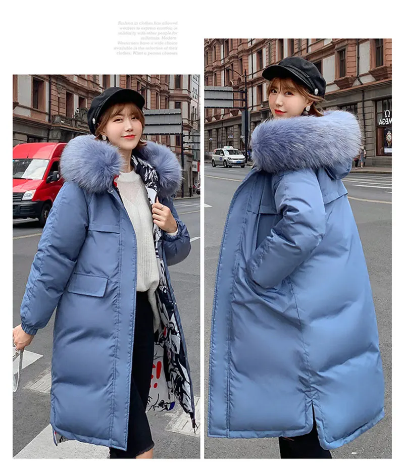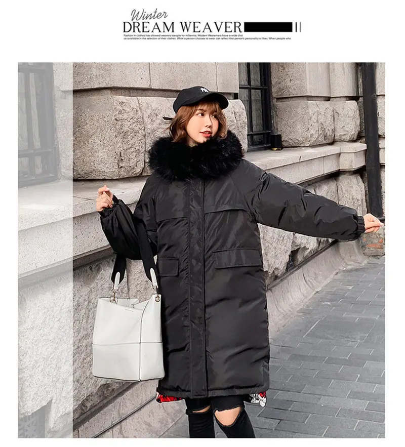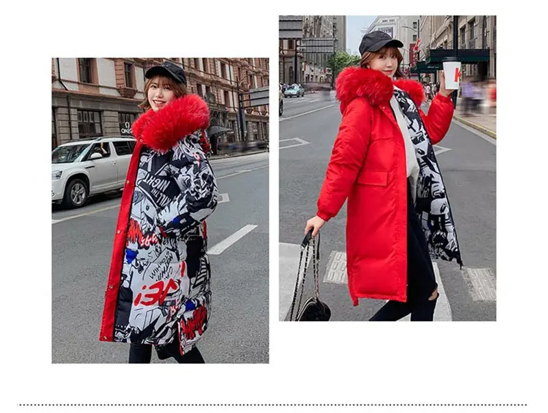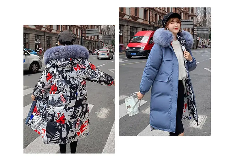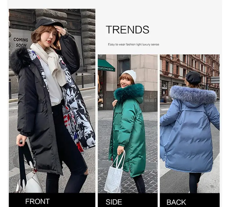 Тип узора: принт Материал: полиэстер, хлопок Длина рукава: длинный рукав Стиль: зимняя женская куртка; Большие размеры Женский пуховик: Двусторонняя Длинная женская зимняя куртка с капюшоном