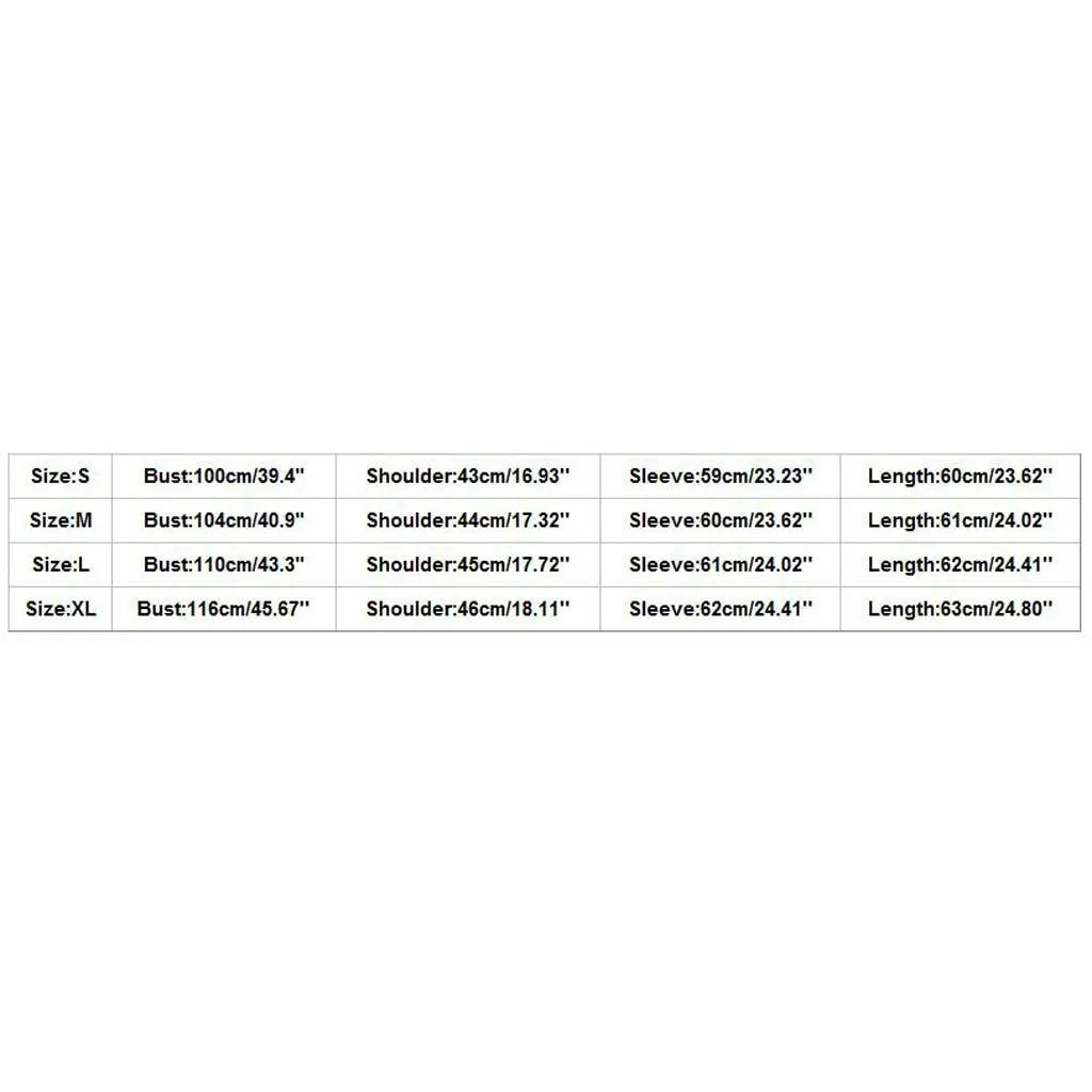| Размеры: L | Обхват груди: 110 см/43,3" | Плечо: 45 см/17,72 дюйма | Рукав: 61 см/24,02 дюйма | Длина: 62 см/24,41 дюйма |