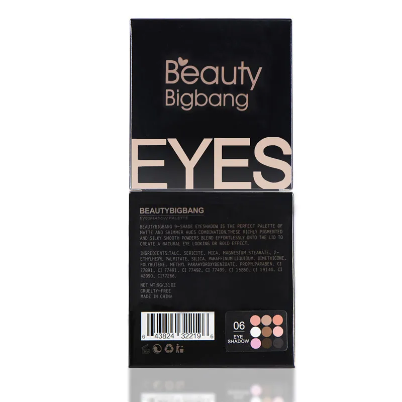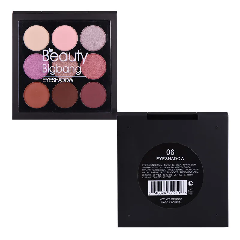 Beauty BigBang 9 видов цветов Тени для век Палитра 7,8 см матовый мерцающий макияж Sombras Maquiagens Cienie Do Powiek тени для век поддон Особенности: 9 ТЕНЕЙ Beautybigbang-это идеальная палитра матовых и мерцающих оттенков. Эти богато пигментированные и шелковистые гладкие порошки легко смешиваются с крышкой, чтобы создать естественный вид глаз или смелый эффект. Состав: тальк, серицит, слюда, стеарат магния, 2-этилгексиловый пальмитат, кремнезем, парафибензоат, жидкий порошок, диметикон, полибутин, полиметил, гидроксибензоат, пропелпарабен, CI 77891, CI, 77491, 77492 、 CI 19140, CI 42090, CI77266. Детали: Вес нетто: 9 г/0,31 Унции Вес: 75 г Размер корпуса: 7,8 см * 7,8 см * 1,5 см Цвет: 6 видов цветов на выбор (как на фото) Внимание: 1. Пожалуйста, не используйте для других целей, кроме макияжа. 2. Пожалуйста, не подвергайте воздействию прямых солнечных лучей или слишком высокой или слишком низкой температуре. 3. Хранить в недоступном для детей месте. В комплект входит: 1 * матовые и мерцающие тени для век BEAUTYBIGBANG Внимание: 1. Пожалуйста, не используйте для других целей, кроме макияжа. 2. Пожалуйста, не подвергайте воздействию прямых солнечных лучей или слишком высокой или слишком низкой температуре. 3. Хранить в недоступном для детей месте. Обратите внимание: из-за освещения и цвета компьютера фактические цвета могут немного отличаться от изображений