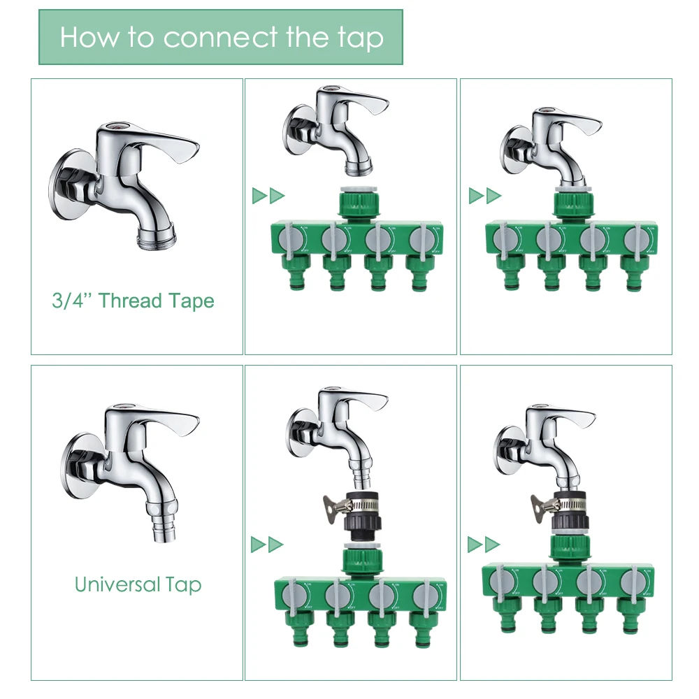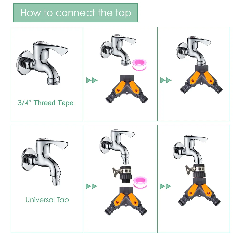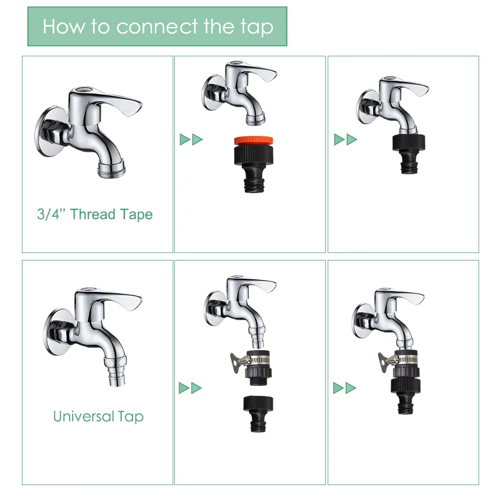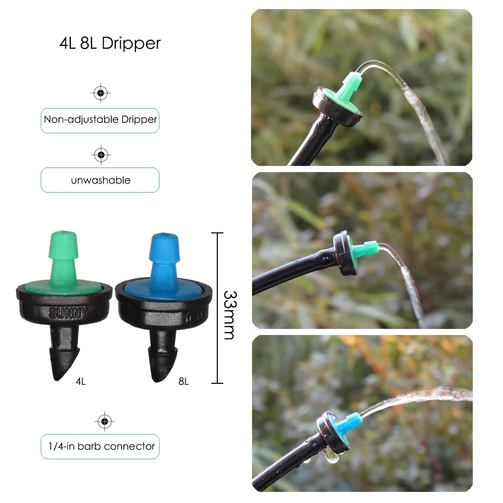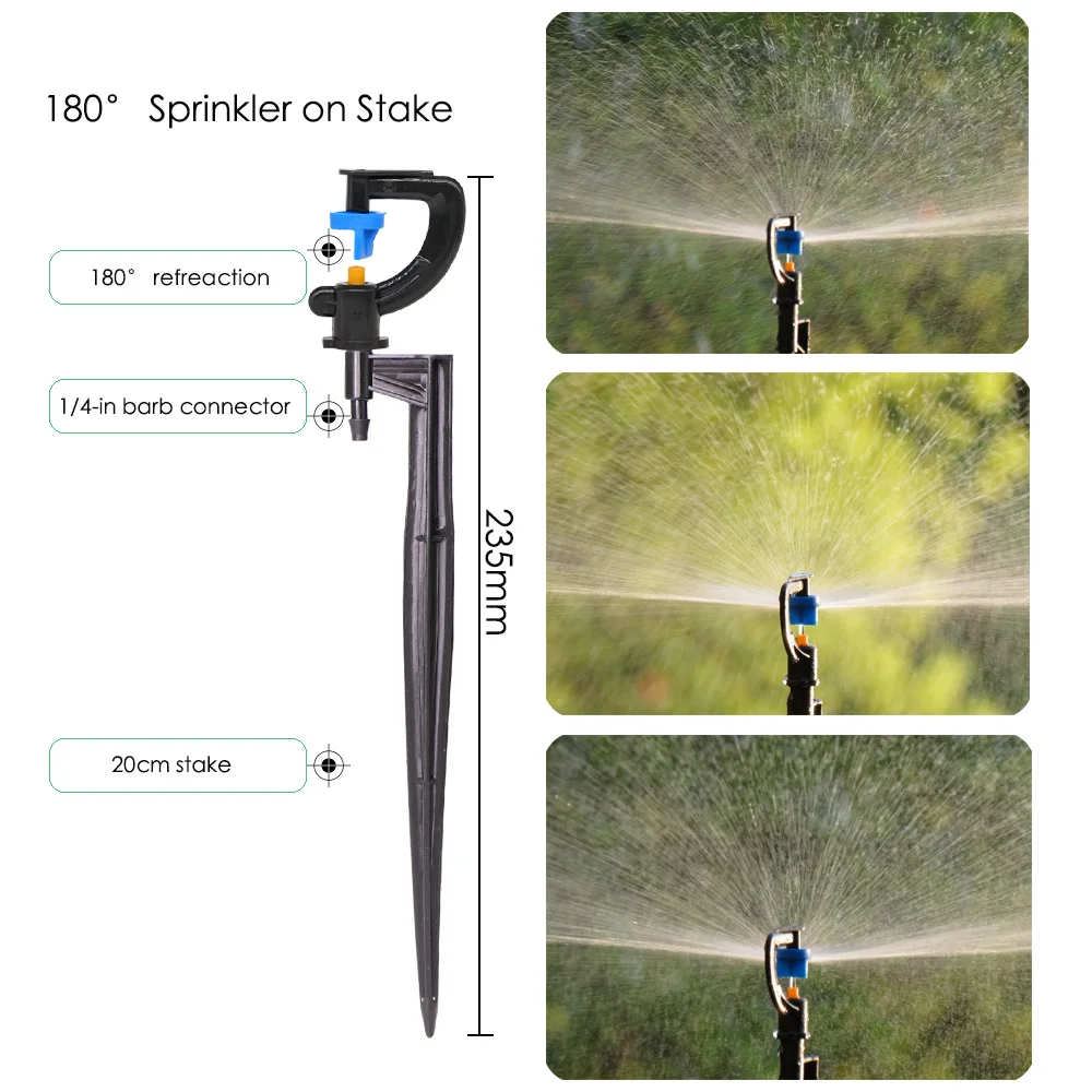 -Он включает в себя 10 типов сопла или спринклеров. Включая регулируемое сопло с 8 отверстиями, 30LPH распылитель тумана, простое сопло тумана, 180 градусов сопло тумана, 4L капельница, 8L капельница, 360 градусов пузырьковая насадка, регулируемый латунный патрубок, 4/7 мм локоть со стрелками, 180 градусов черный nozle.
