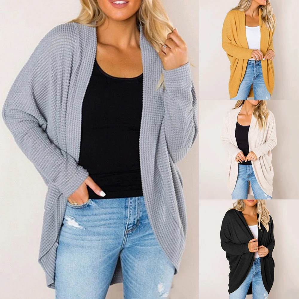 Осенне-зимний Повседневный трикотажный кардиган с рукавом летучая мышь, Женский вязаный свитер, свободный дизайнерский кардиган, женский джемпер, пальто