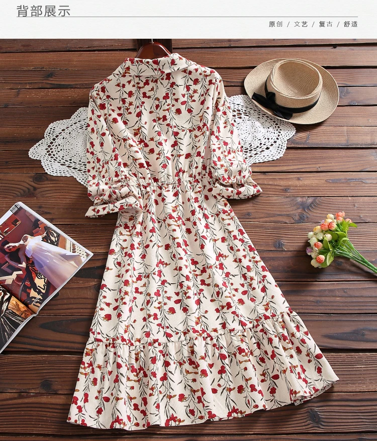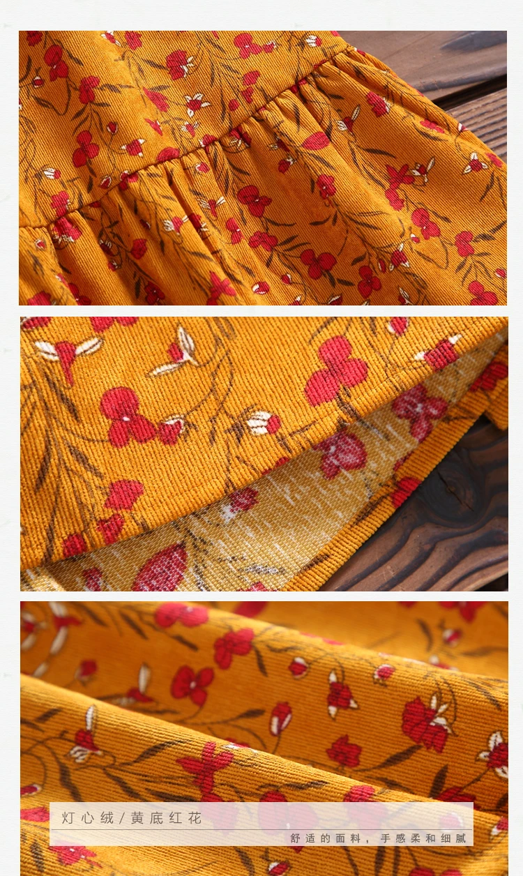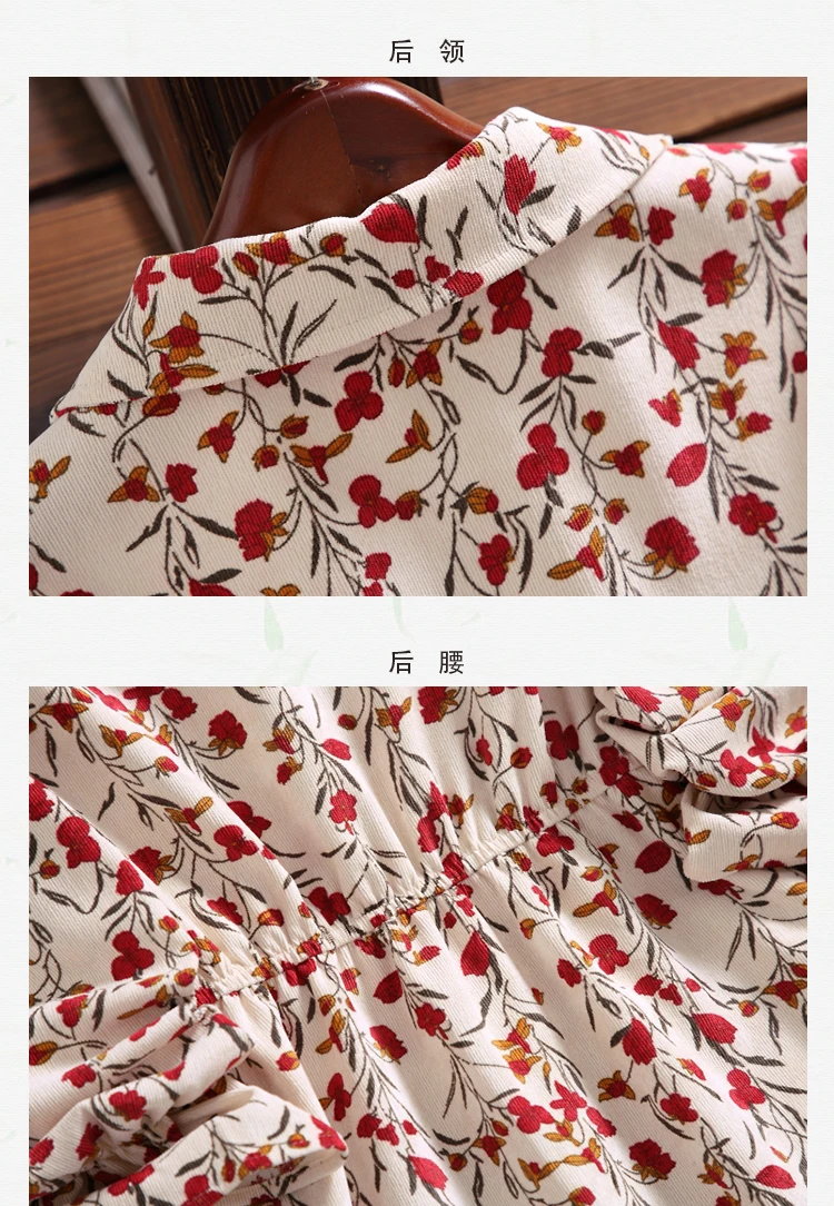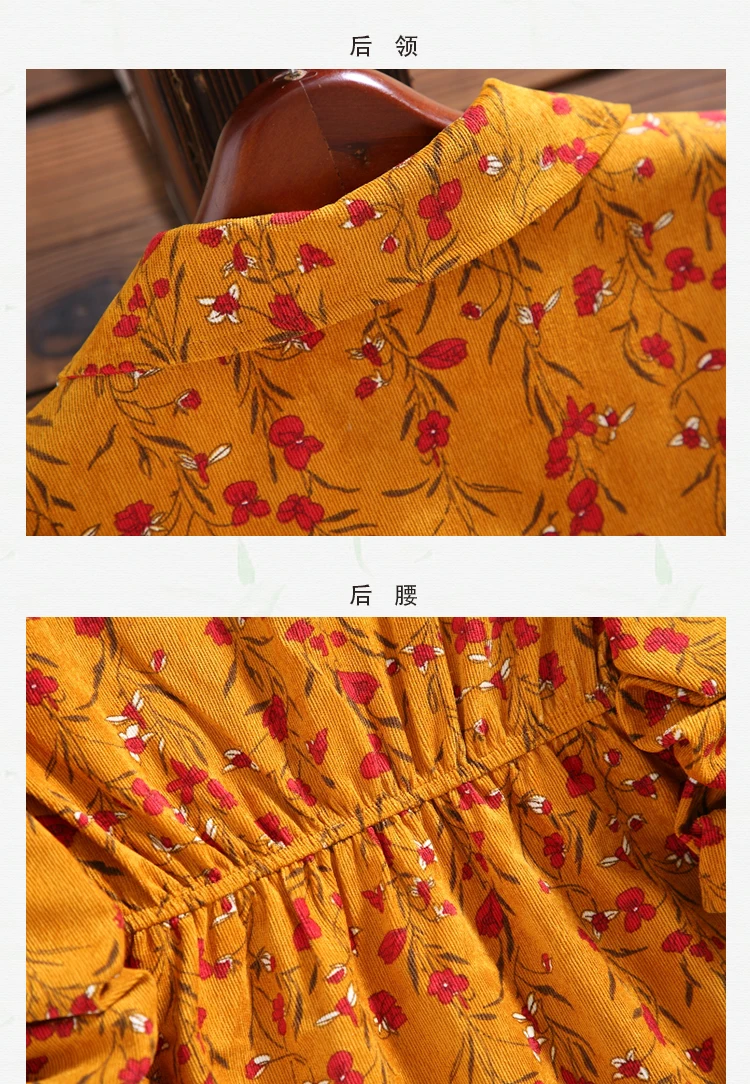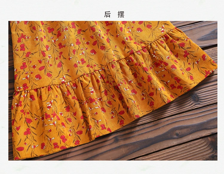 Новое поступление, женское милое вельветовое платье средней длины, Осеннее модное Повседневное платье с длинным рукавом и цветочным принтом, mori girl vestidos