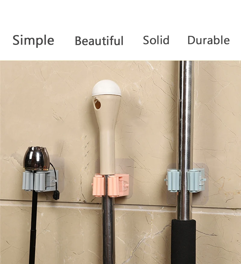 Пластиковый настенный держатель для швабры для ванной комнаты, органайзер, кухонный инструмент, зажим для щетки, метла, вешалка, крючок для швабры