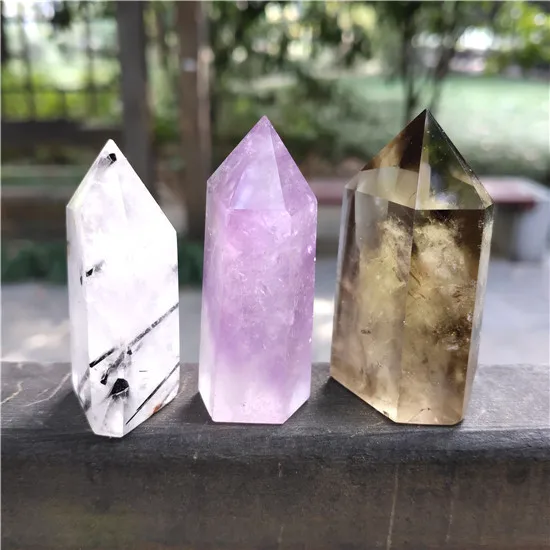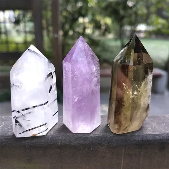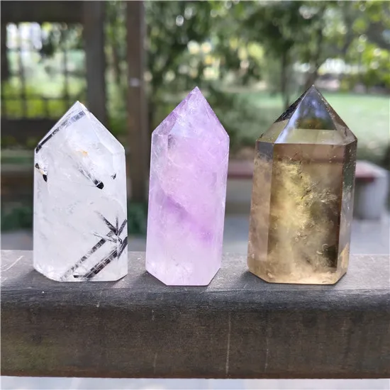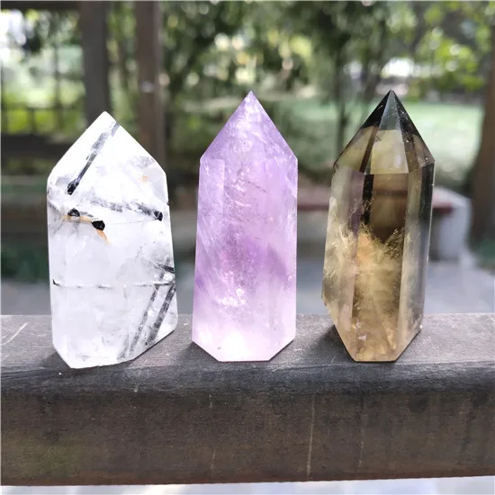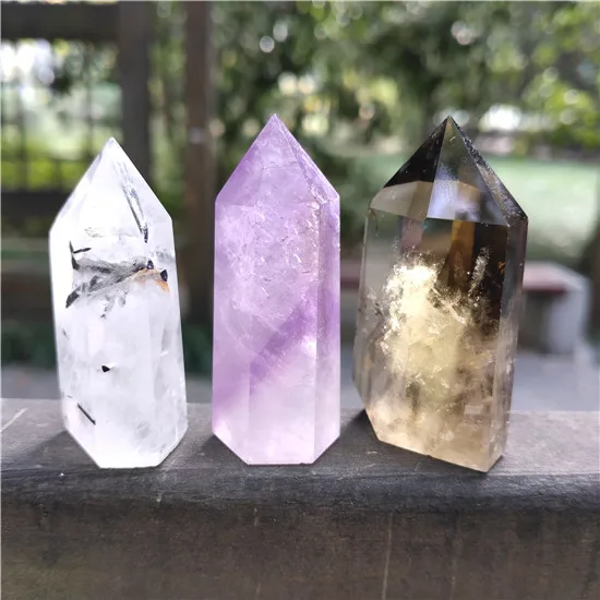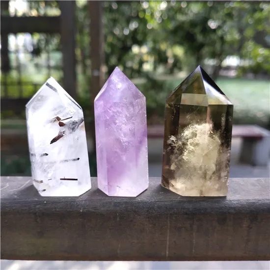 Crystal Quartz Wand Natural Tourmaline Lapis Lazuli Crystal Point Amethyst Smoky Point Reiki Healing Quartz Obelisk Meditation