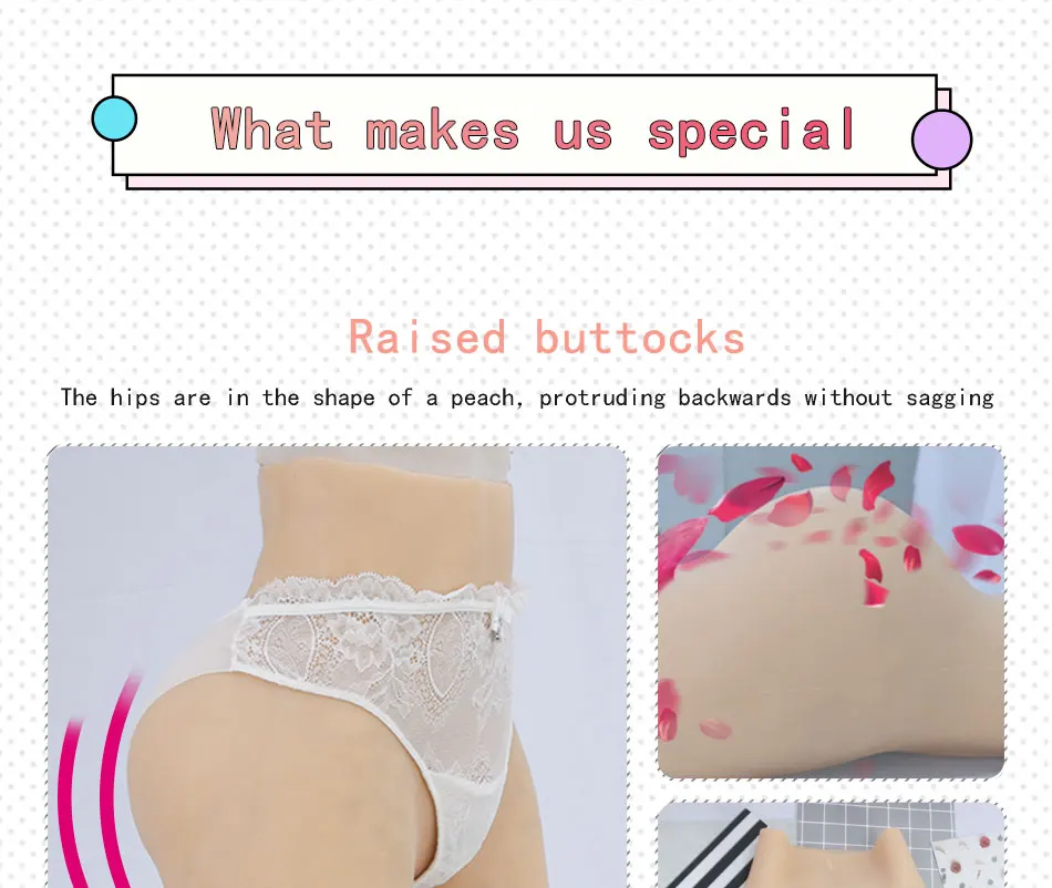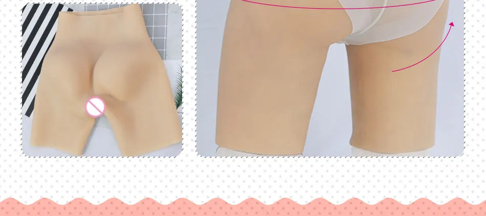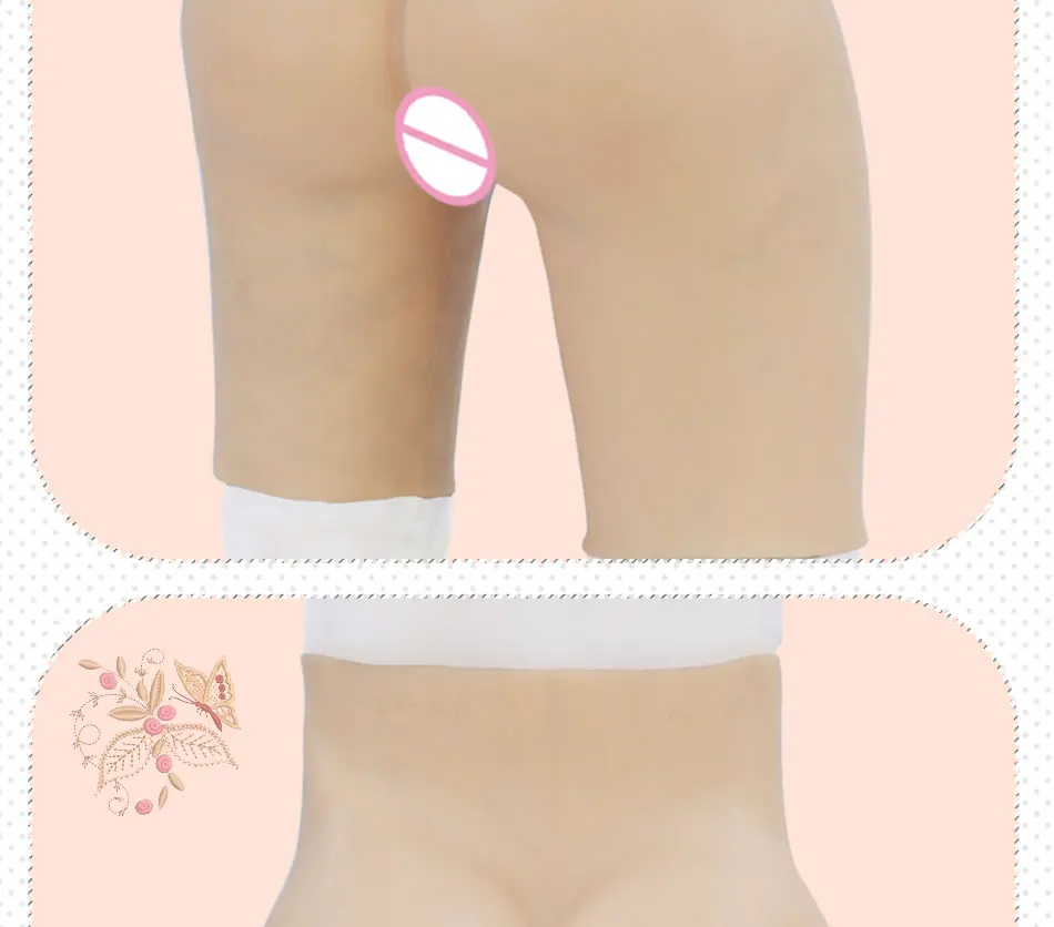 Изделие имитирует половые губы девушки и оказывает эффект поднятия и подтягивания ягодиц. Вставное влагалище имеет катетер внутри и анус открыт.