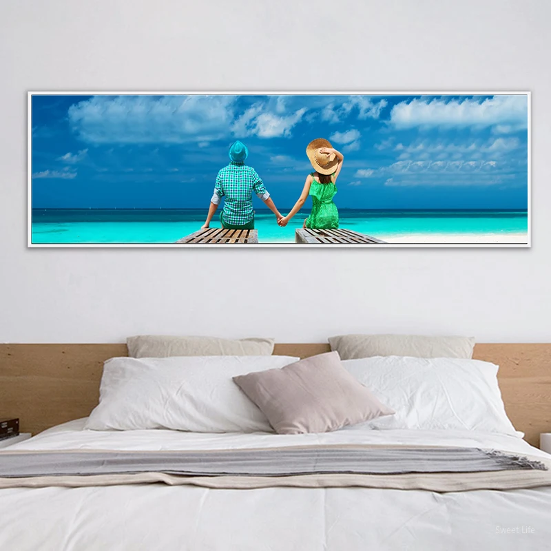 Nordic Wall Art Painting Home Decor Romantic Lover Sunrise Sea Beach Landscape Canvas Painting Picture Sea Wave Art Print Poster