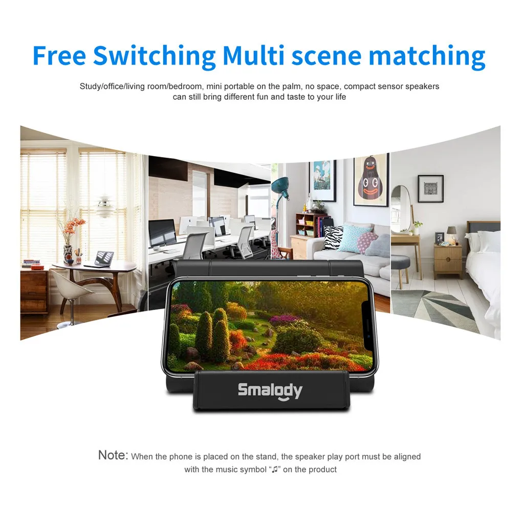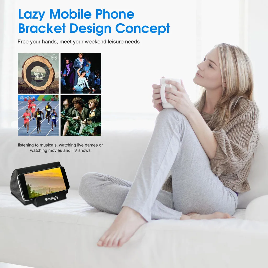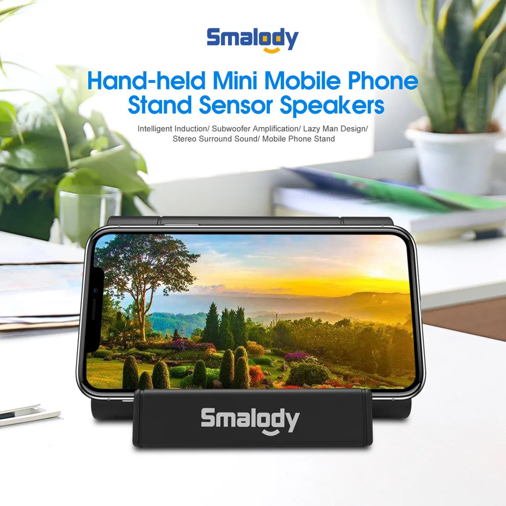 - Портативная мини-подставка для мобильного телефона с сенсорными динамиками.
