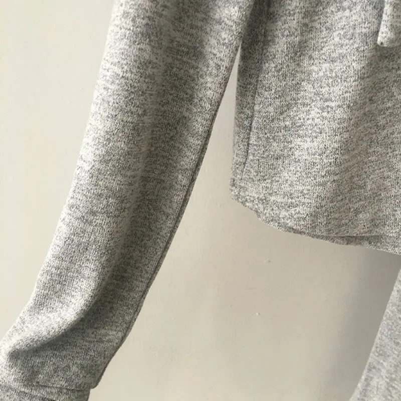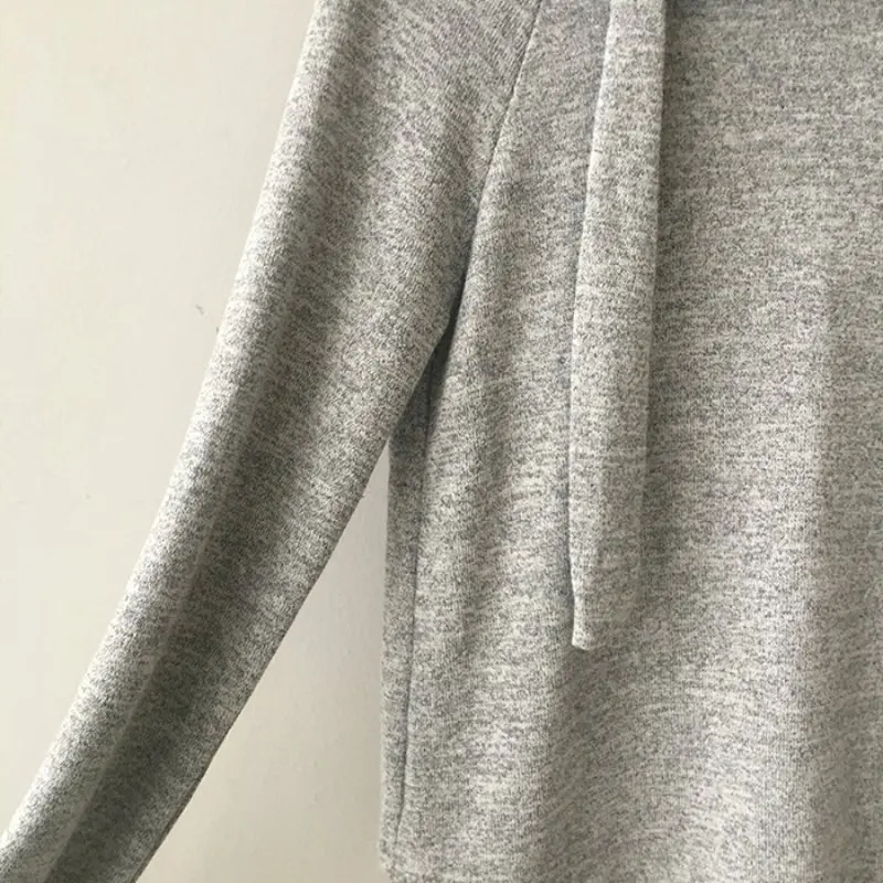 2. Верх: этот топ с длинными рукавами, воротником с капюшоном, асимметричным подолом и однотонным цветом.