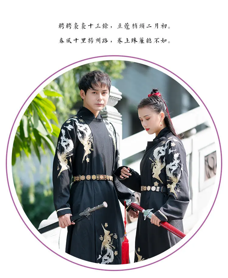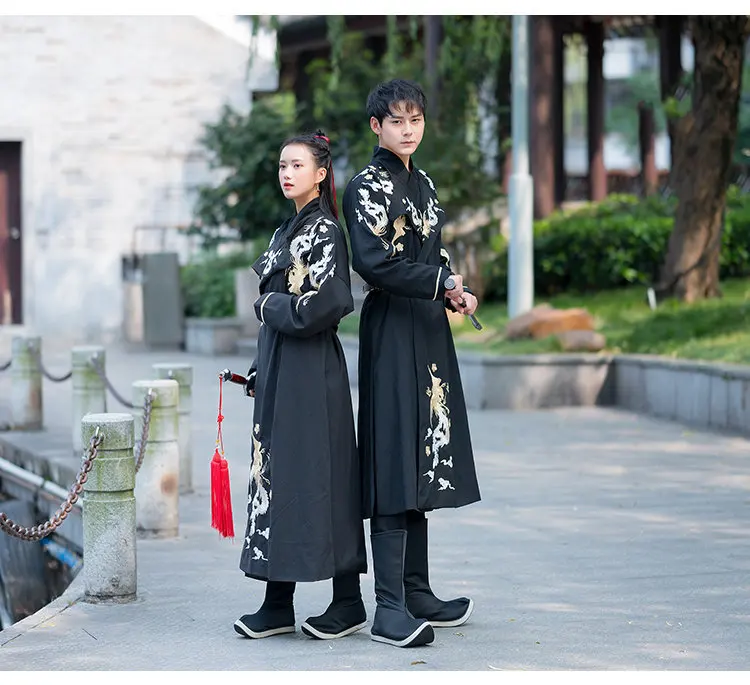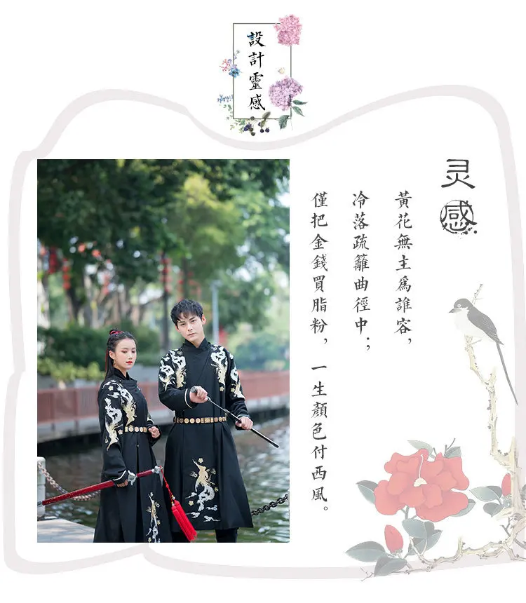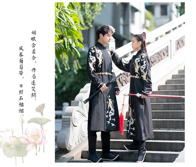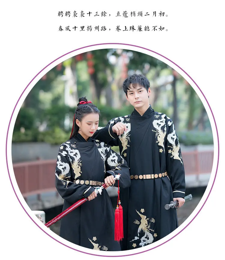 Ming dynasty Royal guards классическая вышивка с круглым вырезом для мужчин и женщин CP парный халат + кожаный ремень 4 сезона chivalrous стиль синяя одежда Повседневная Праздничная Hanfu Примечание: При размещении заказа, пожалуйста, укажите ваш рост, вес груди и размер талии 1. Спасибо