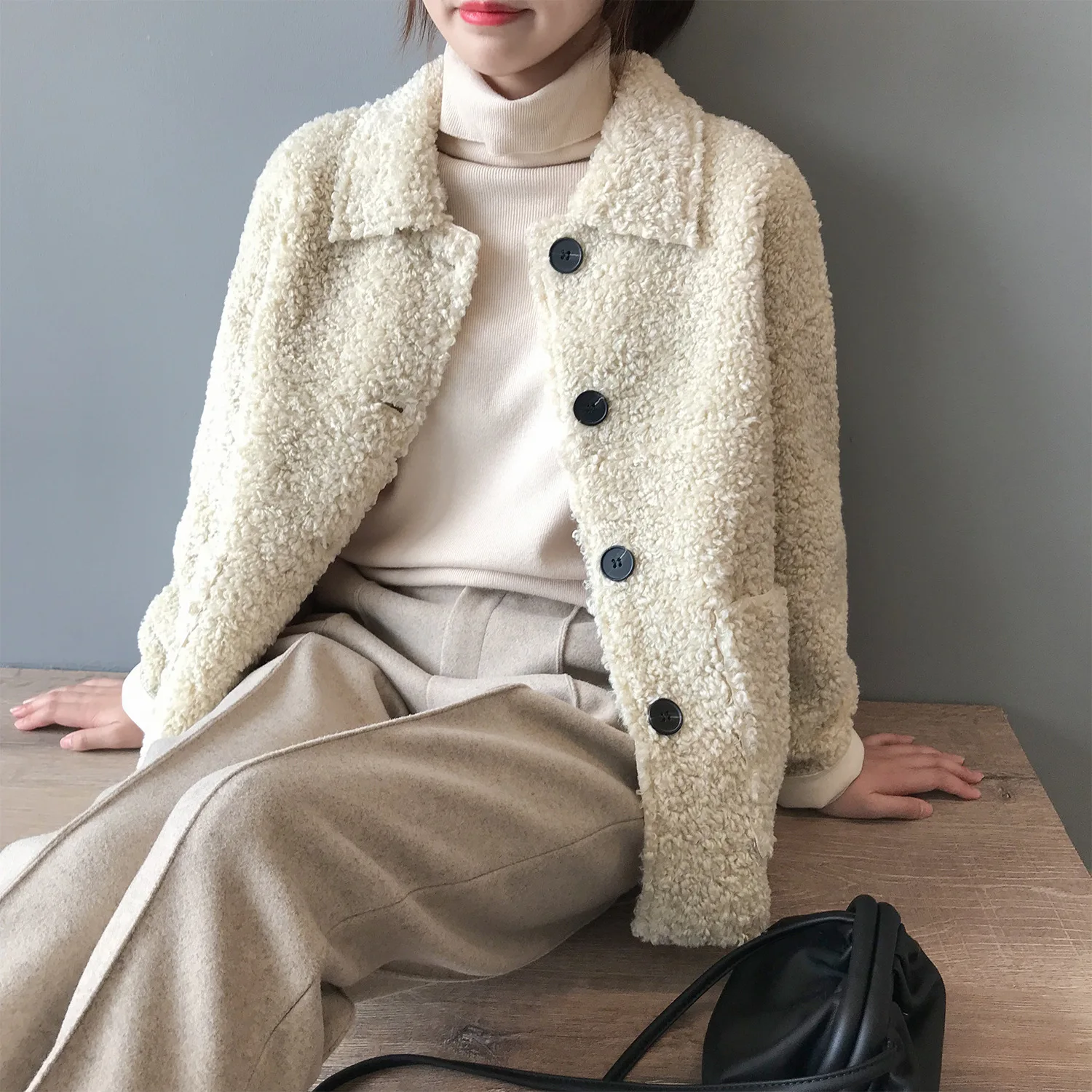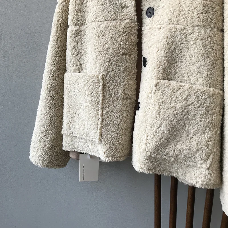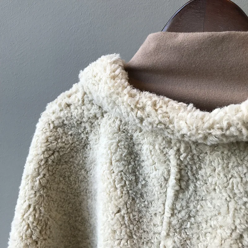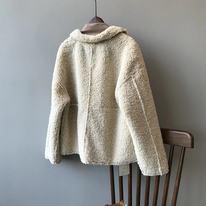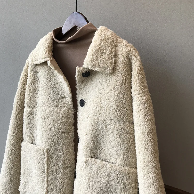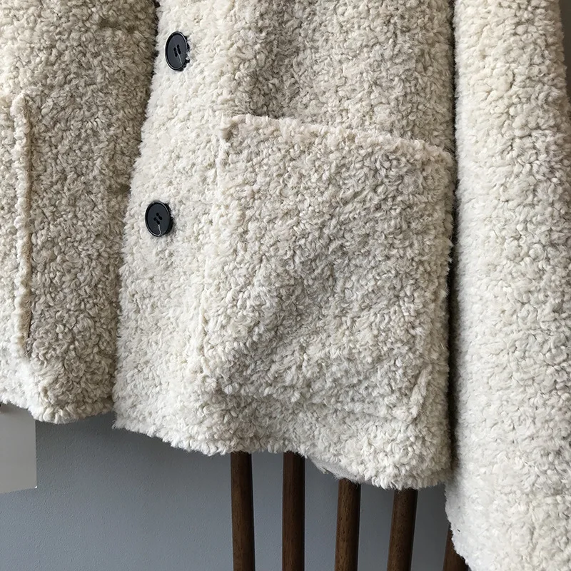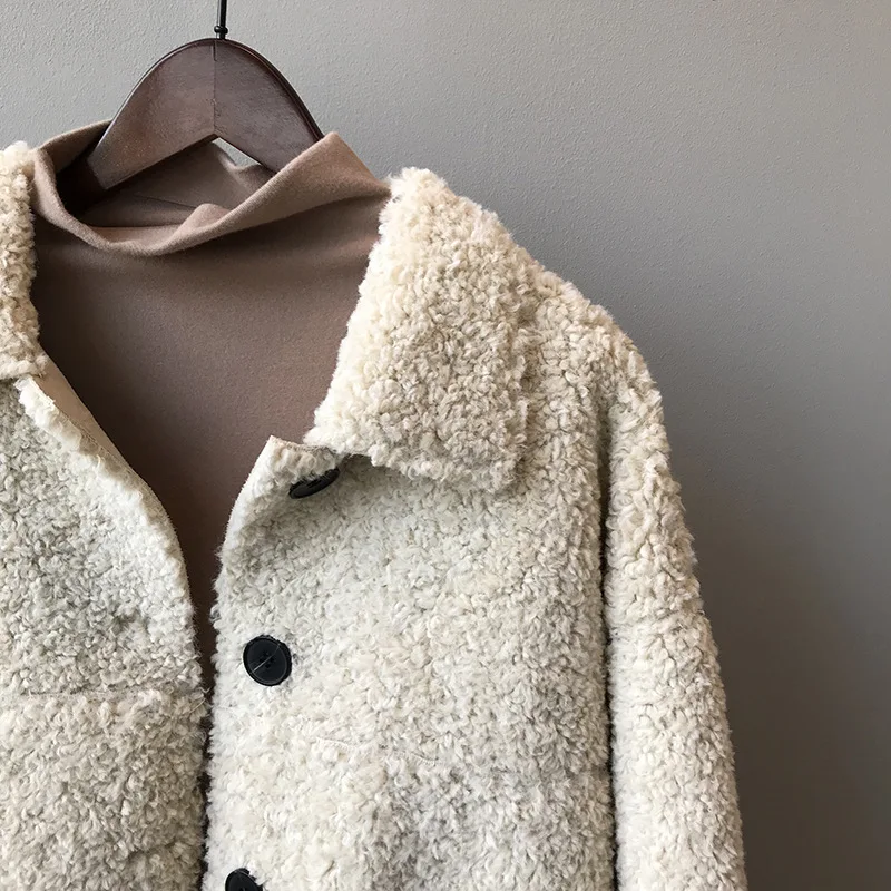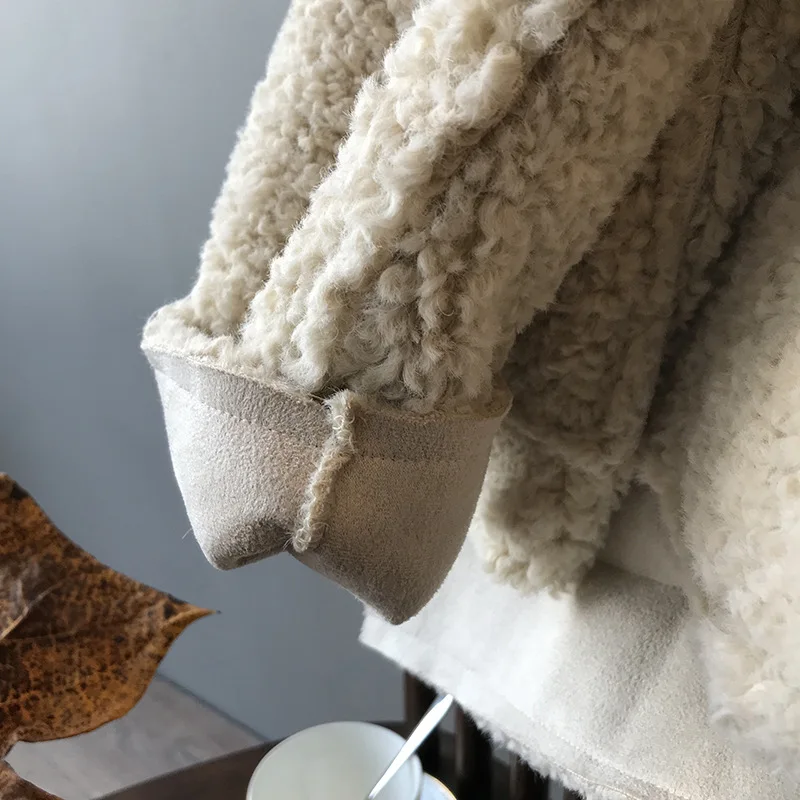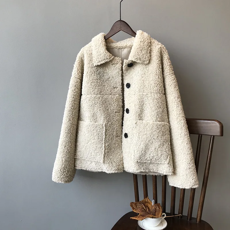 100% новые и высококачественные! Ткань: овечья шерсть. Приятный на ощупь, не легко распущенные волосы Бежевый цвет выглядит элегантно и тепло Что вы получаете: 1 куртка из овечьей шерсти