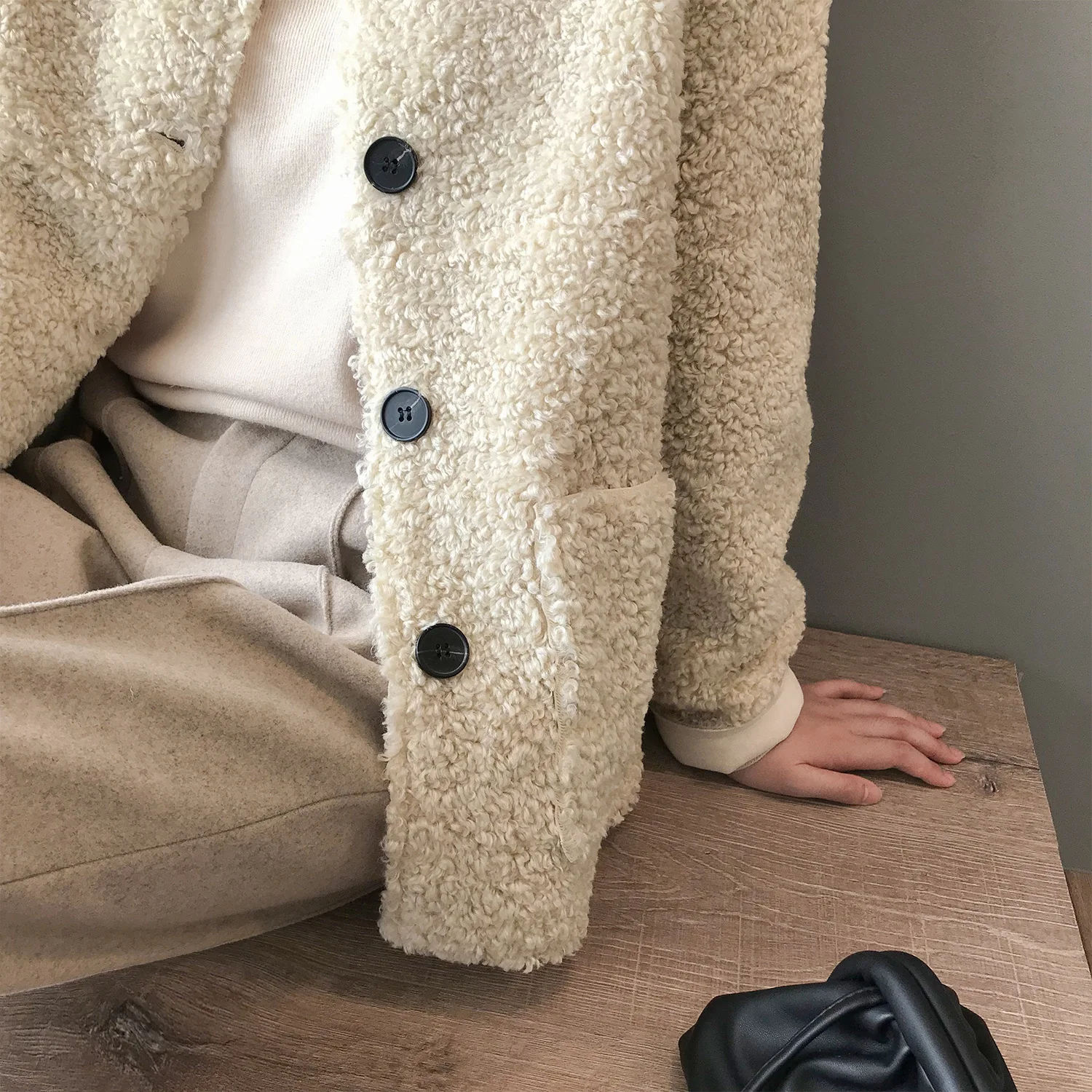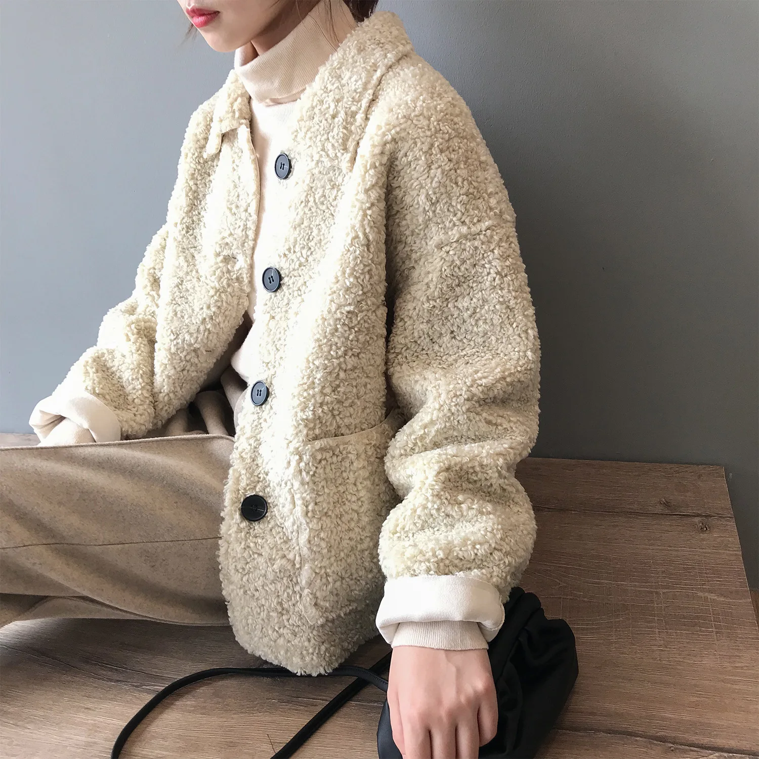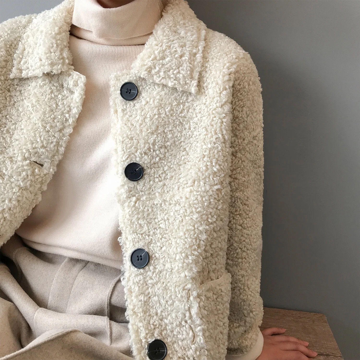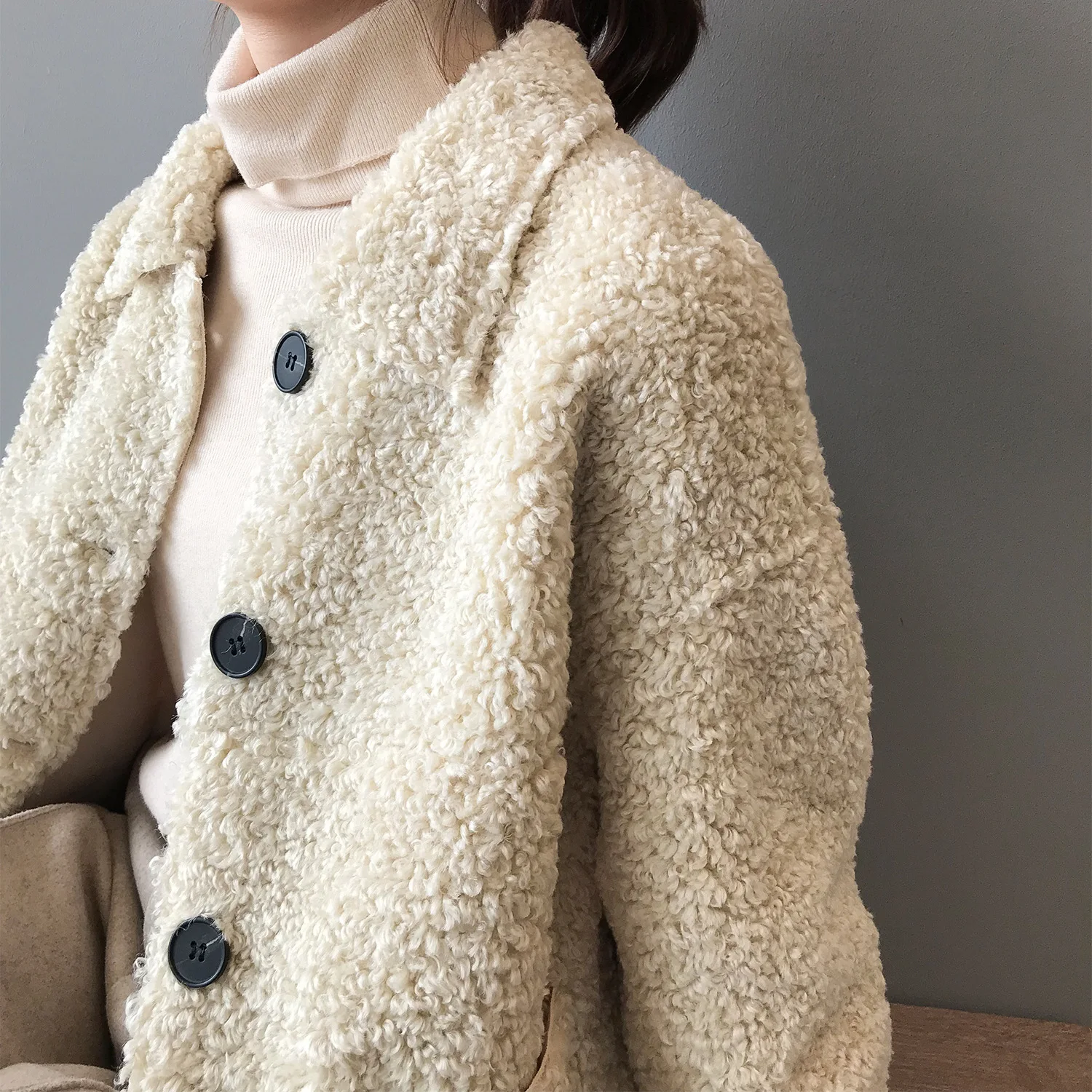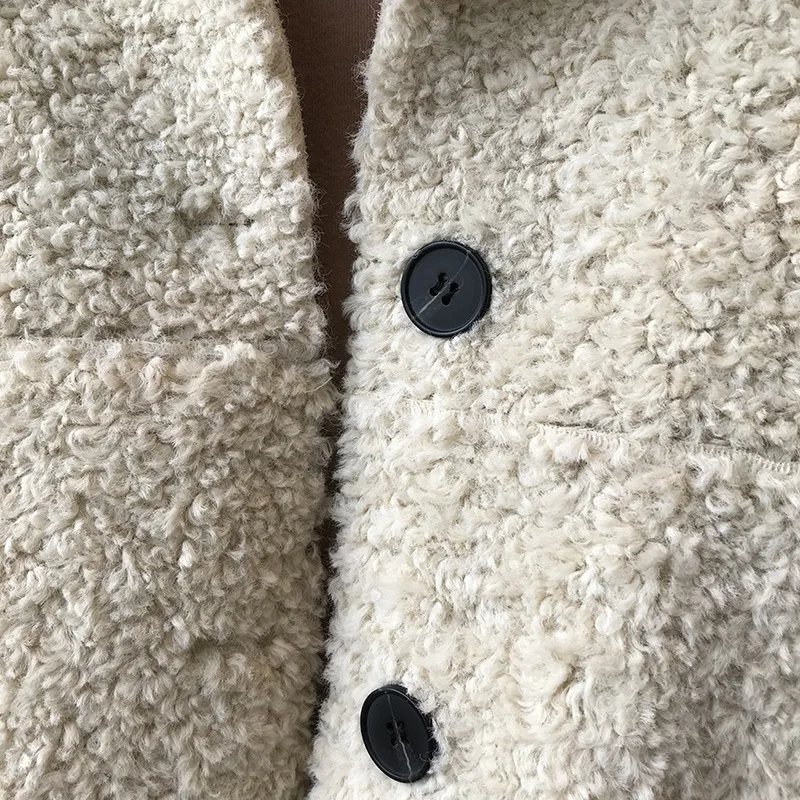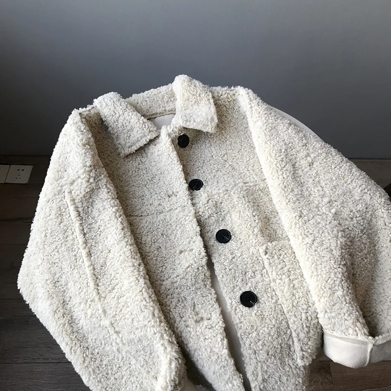 100% новые и высококачественные! Ткань: овечья шерсть. Приятный на ощупь, не легко распущенные волосы Бежевый цвет выглядит элегантно и тепло Что вы получаете: 1 куртка из овечьей шерсти