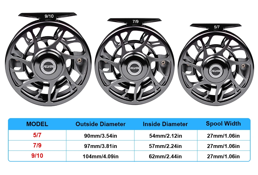 Размер: 5/7 7/9 9/10 Ширина катушки: 27 мм Внешний диаметр: 90 мм/3,54 дюйма 97 мм/3,81 дюйма 104 мм/4,09 дюйма Диаметр Insaide: 54 мм/2,12 дюйма 57 мм/2,24 дюйма 62 мм/2,44 дюйма