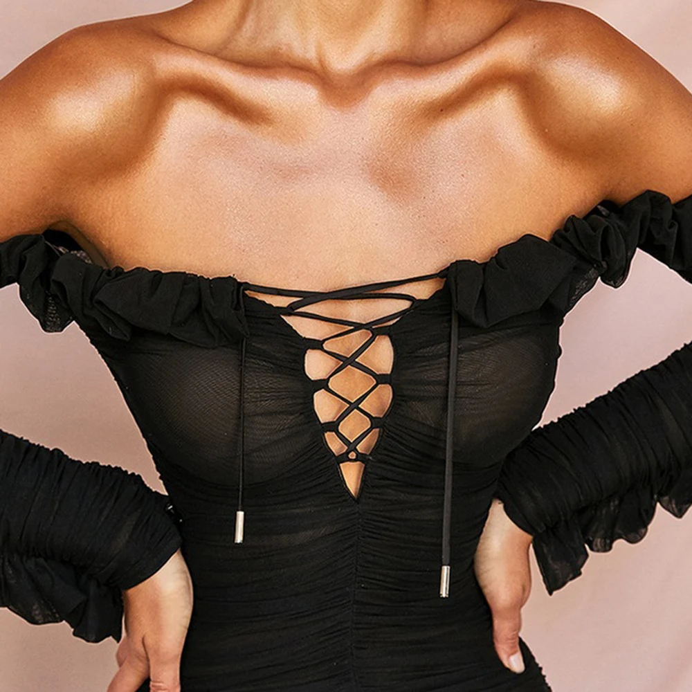 Летнее сексуальное Бандажное облегающее платье с открытыми плечами, женское черное мини-платье, элегантные вечерние платья знаменитостей, черные модные платья Vestidos