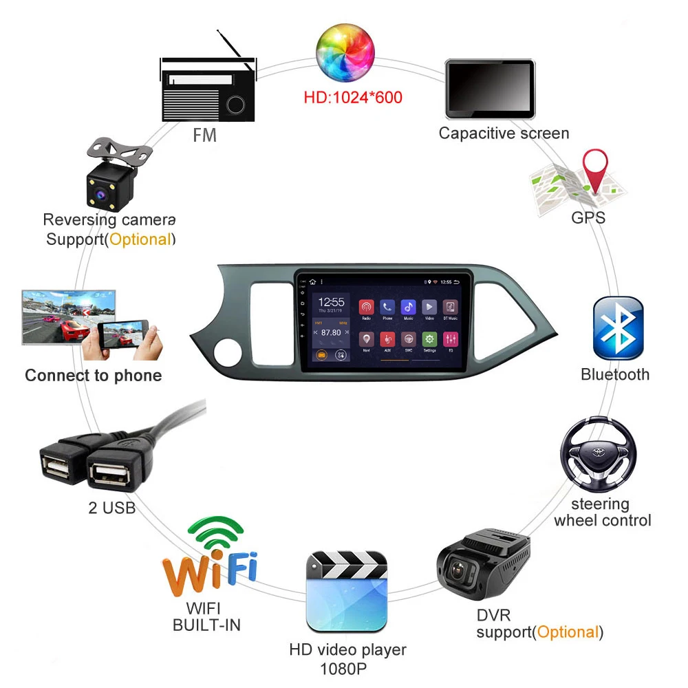 Разрешение экрана 1024*600, поддержка видео-дисплея full HD 1080 P. Несколько вариантов настройки дадут вам наиболее комфортный опыт, как вам нравится.