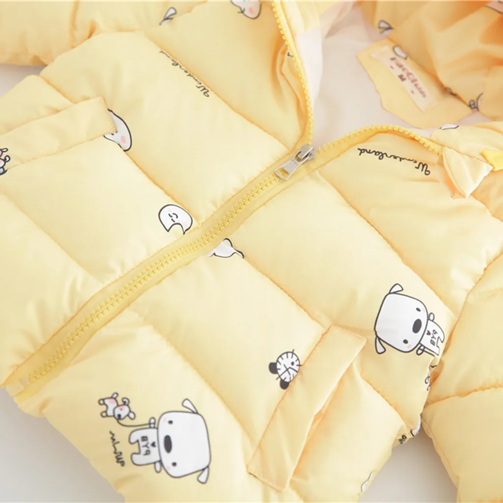 Зимнее пальто с рисунком для маленьких мальчиков и девочек, куртка, детская Утепленная зимняя верхняя одежда с капюшоном на молнии