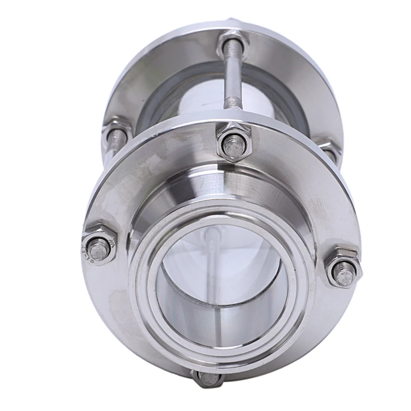 Плоское смотровое стекло с зажимным концом, санитарное прямое смотровое стекло SUS316 1,5 дюйма три зажима типа (проточная труба OD 38 мм)