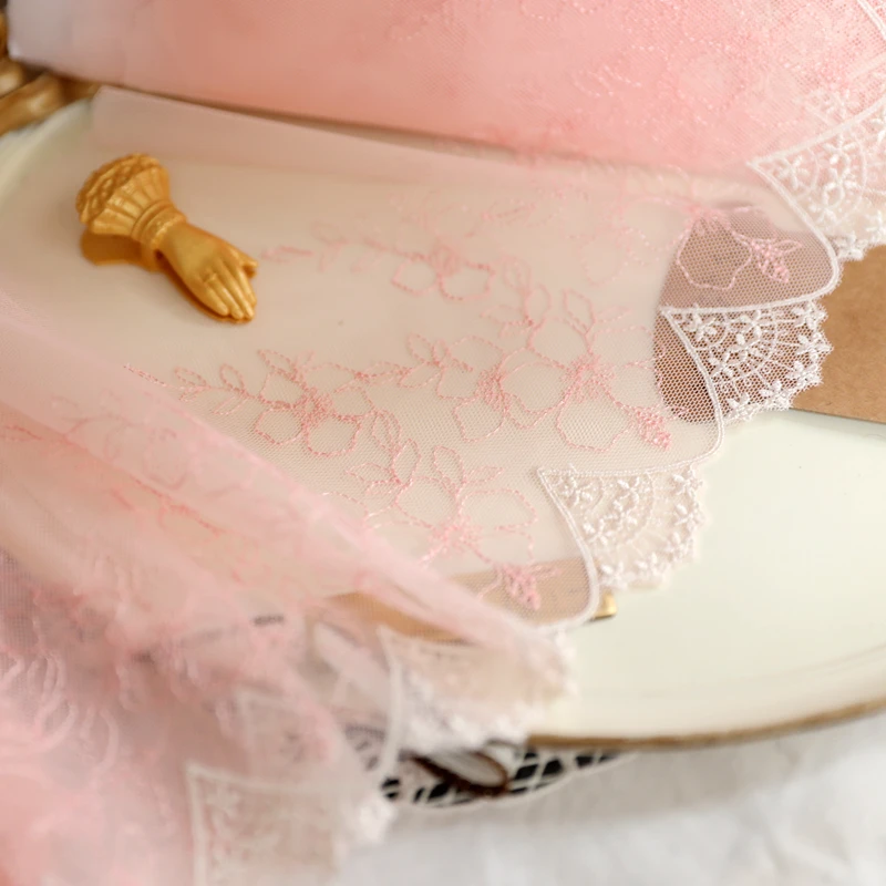 Кружево с вышивкой из розовой пряжи хорошего качества