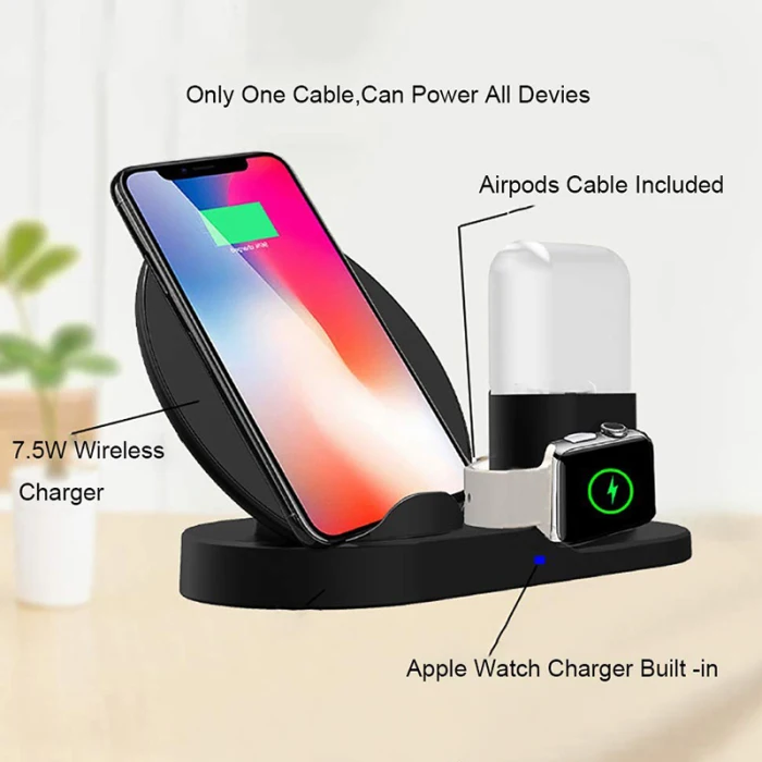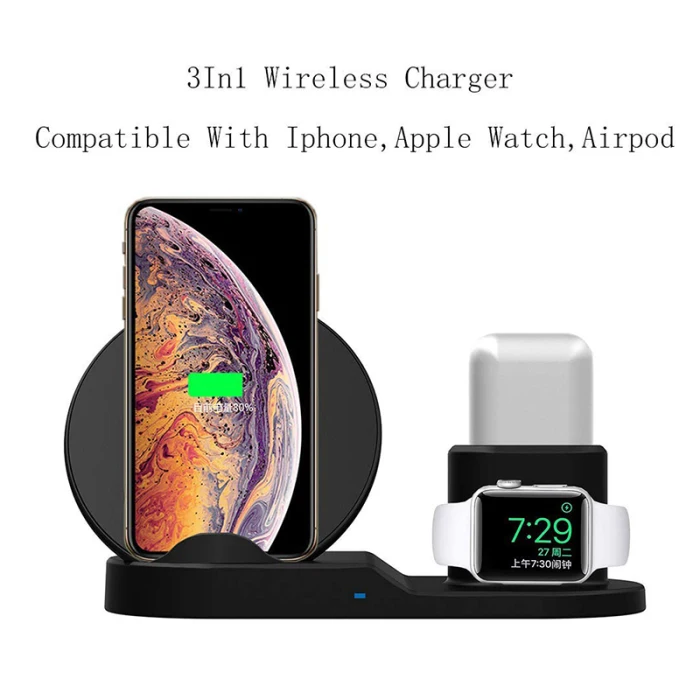 1. 3 в 1 идеально заряжает iPhone/Apple Watch/Airpods одновременно, только нужно зарядное устройство QC3.0 (не входит в комплект) может заряжать все устройства apple.