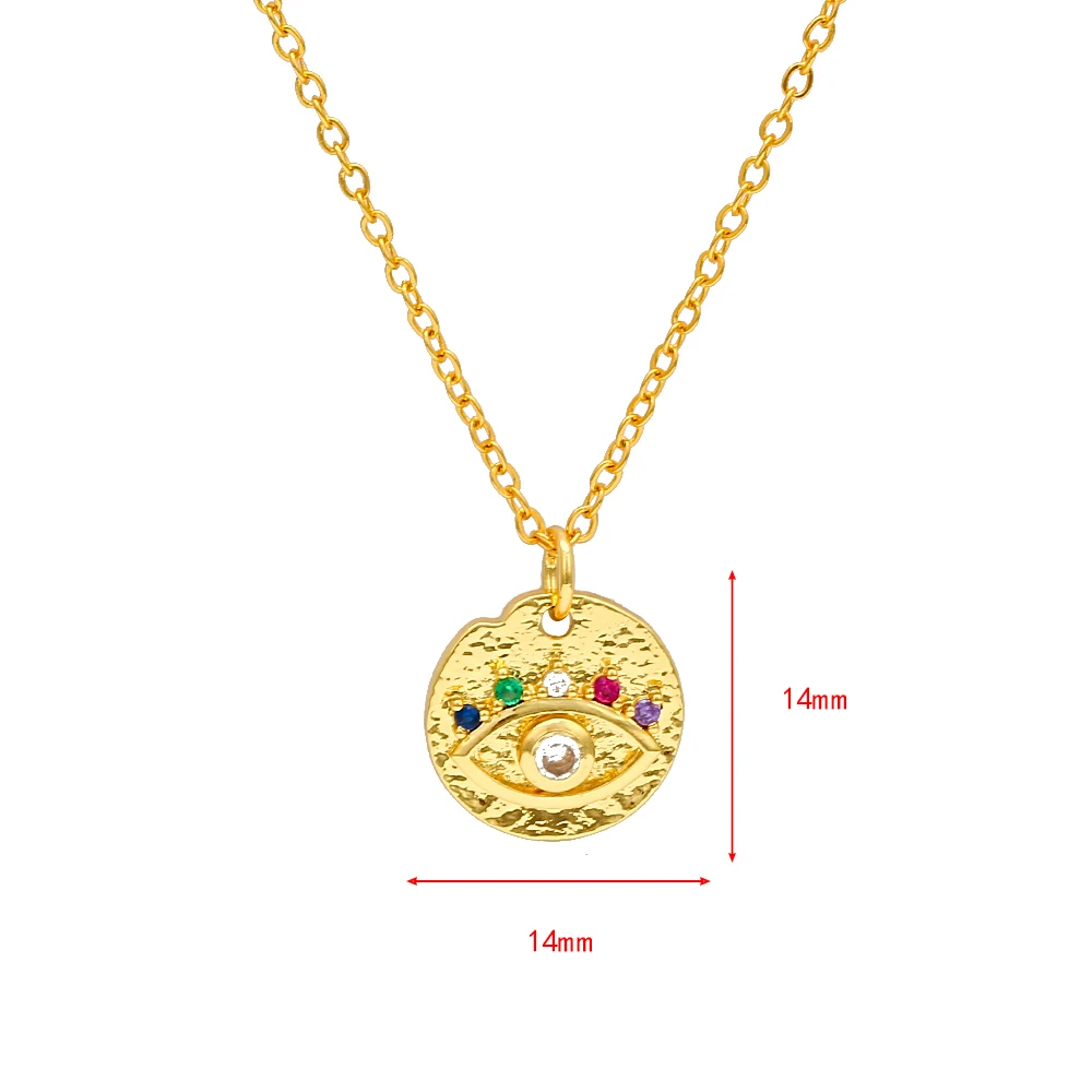 Материал: медь Цвет цепочки: золото/серебро/розовое золото Размер: 14*14 мм Форма: Турецкий Дурной глаз, Круглые, Вес: 2 г Посылка: полиэтиленовый пакет