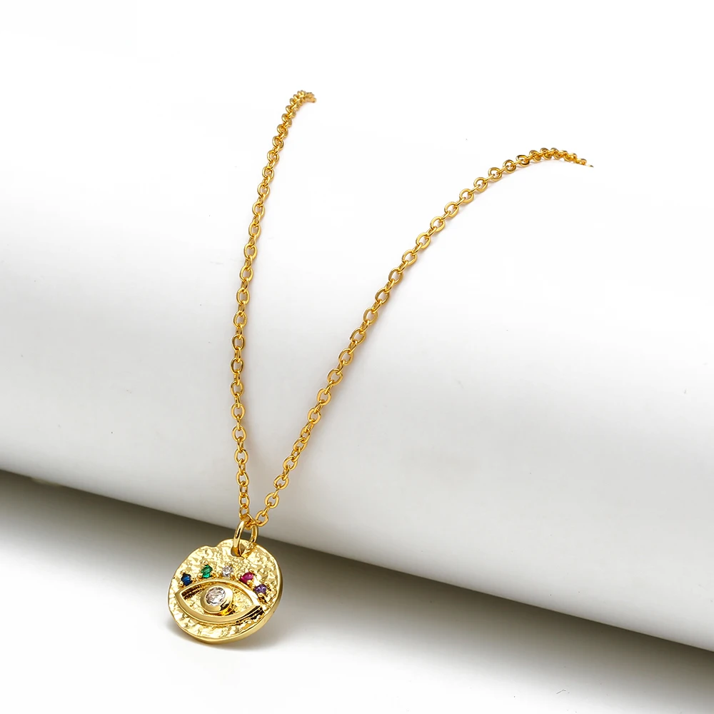 Яркое циркониевое ожерелье от сглаза, Женская цепочка золотого и серебряного цвета, круглый кулон, ожерелье, ювелирные изделия для женщин и женщин EY6649