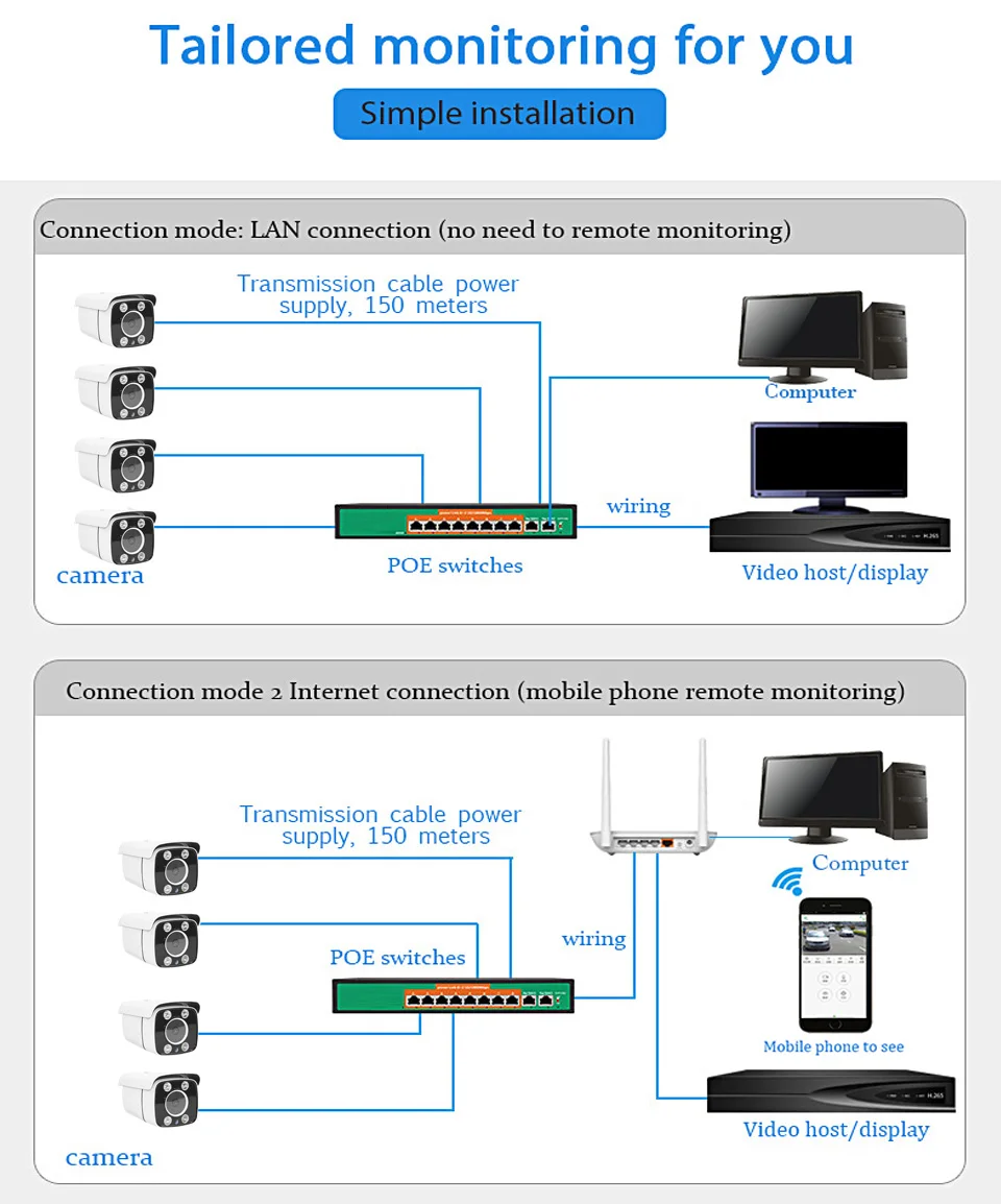 Обратите внимание: 12 В постоянного тока и 48 В PoE версия опционально: 12 В постоянного тока версия может просто работать с DC 12 В 1A-2A источник питания (не входит в комплект) 48V PoE версия имеет PoE модуль внутри, который может работать с DC PSU 12V1A-2A и 48V PoE переключатель/инжектор (не входит в комплект)