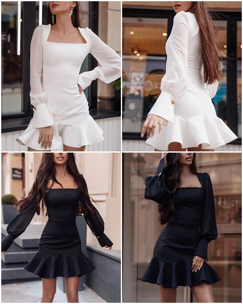 Женское мини-платье Yojoceli, облегающее платье-Русалка с длинным рукавом и квадратным вырезом