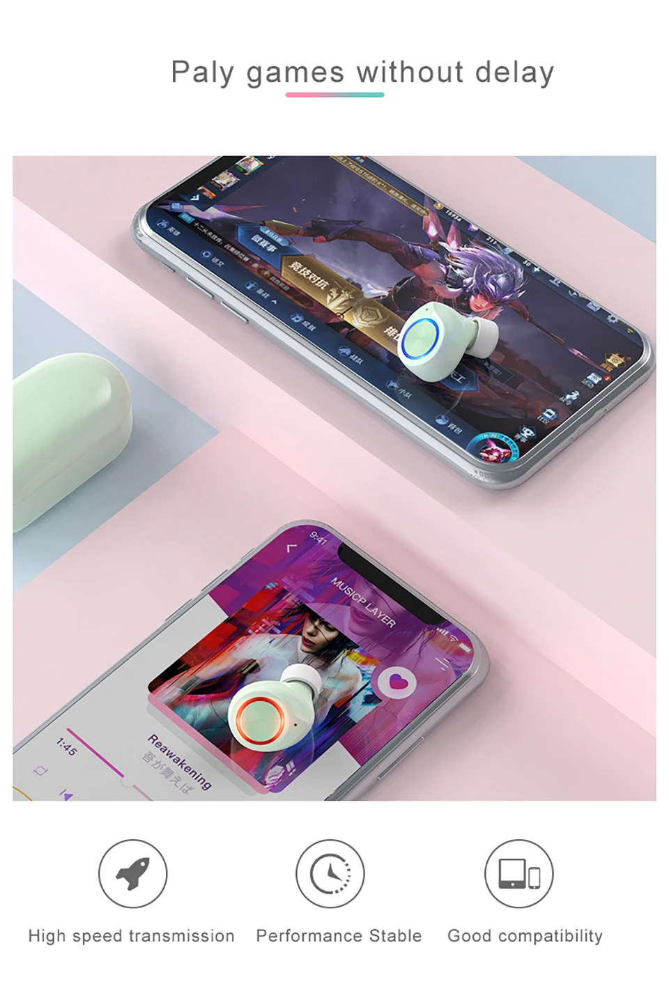 Наслаждайтесь беспроводным стерео, поддержка одностороннего использования можно совместное использование, бесплатное прослушивание