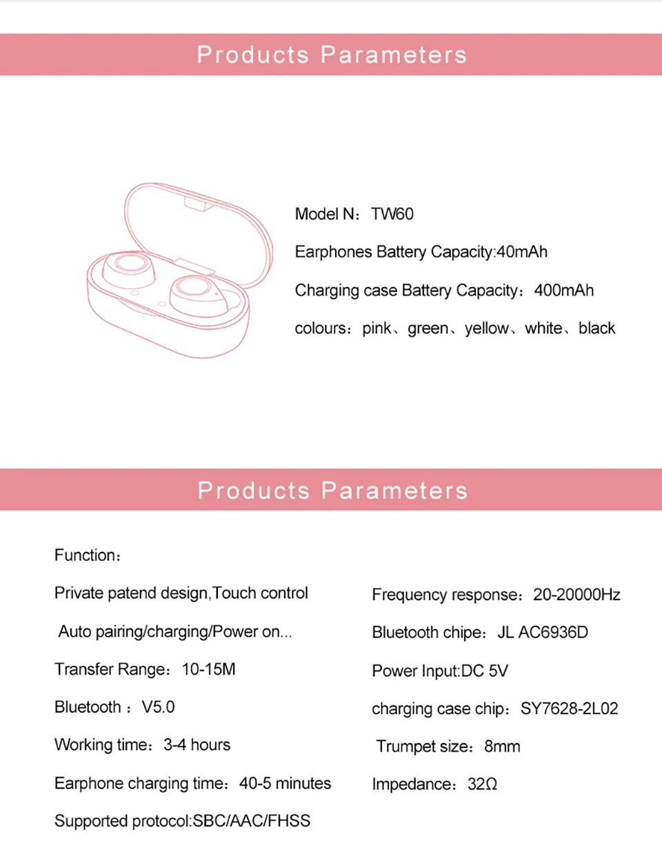 Беспроводная гарнитура TW60, красивый внешний вид, высокое качество
