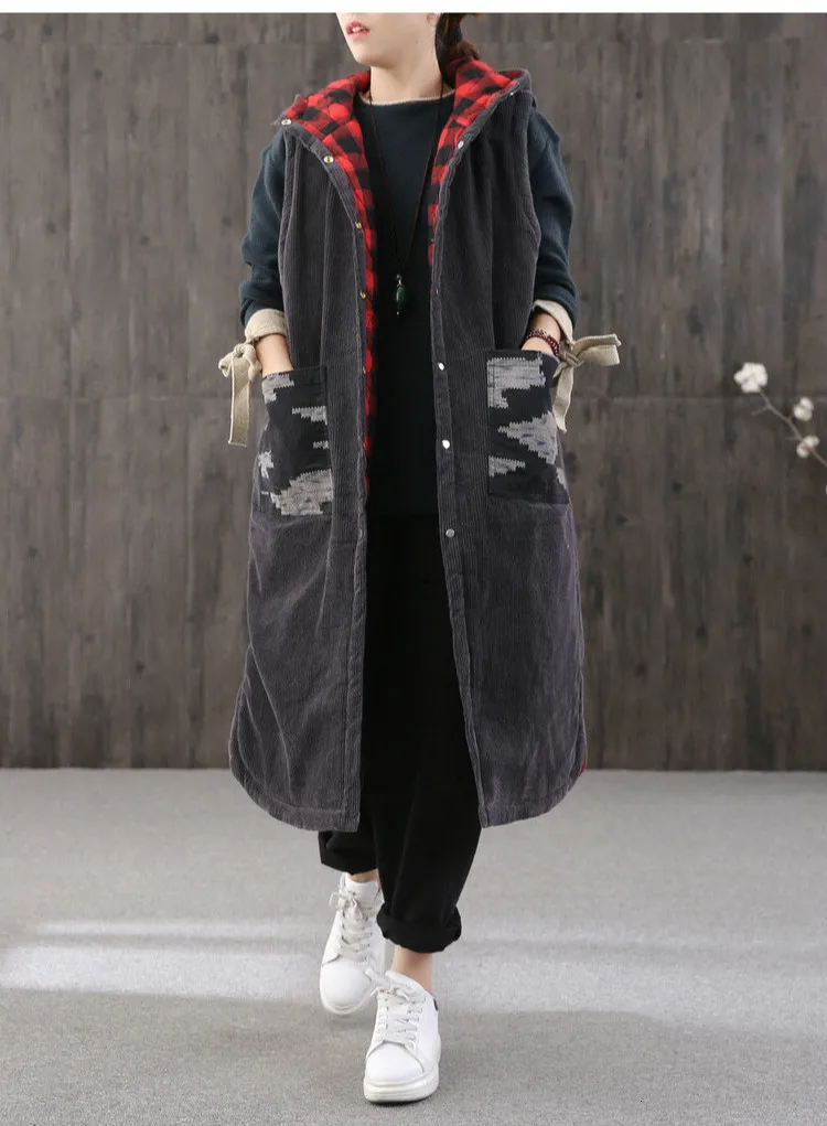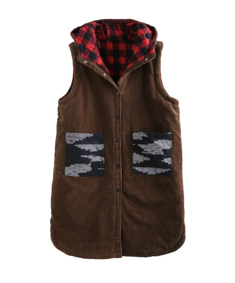 Модные корейские теплые клетчатые Жилеты с капюшоном