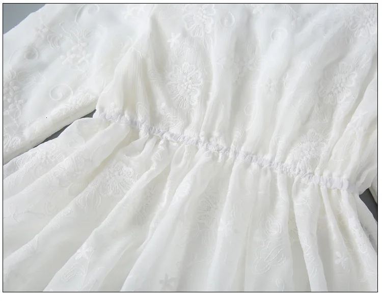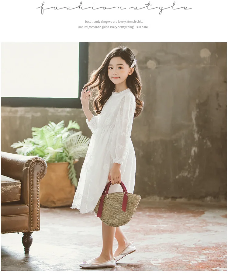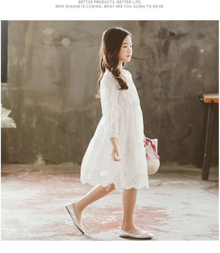 Платье с длинными рукавами и вышитыми цветами для девочек; Праздничная одежда Детские платья с эластичной резинкой на талии и круглым вырезом для девочек; Осенне-зимняя одежда
