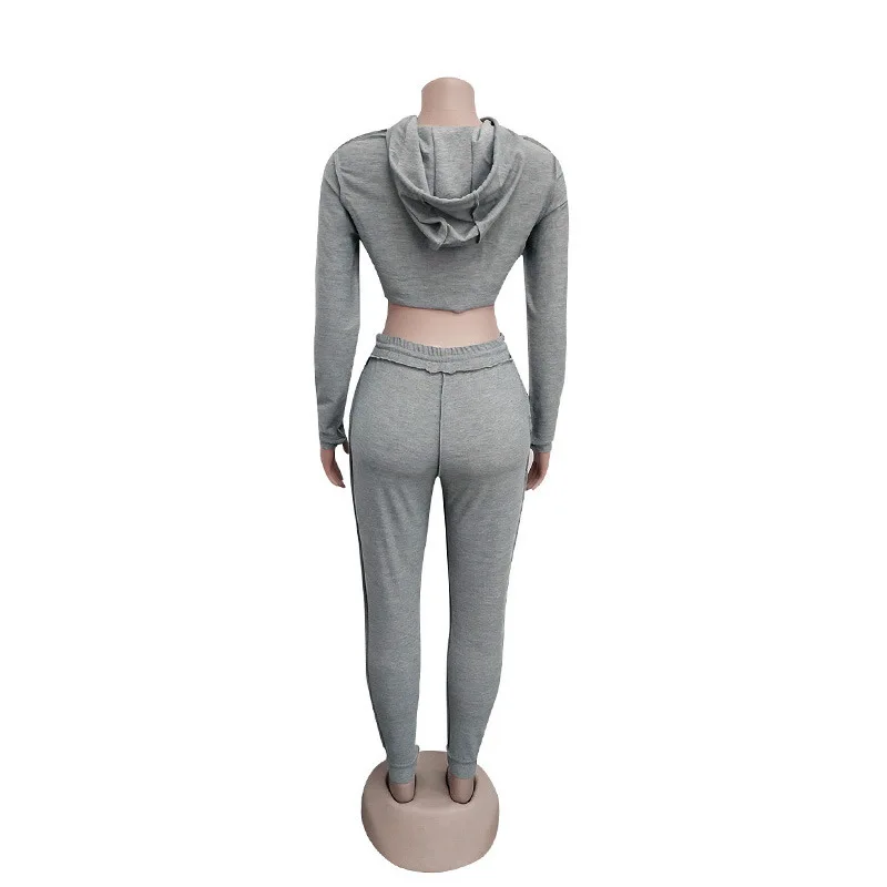 Женский Повседневный комплект из двух предметов, однотонный спортивный костюм в стиле пэчворк с длинными рукавами и длинными штанами, осень 2019